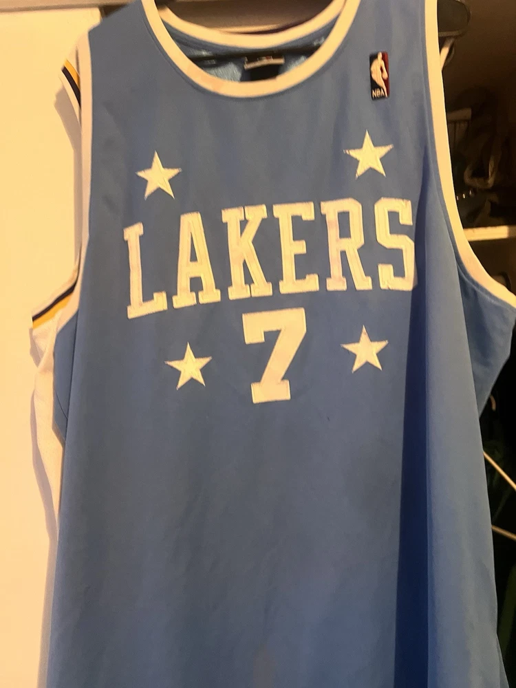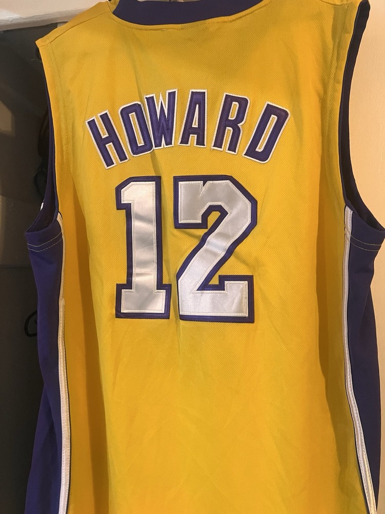 Celebrate your Los Angeles Lakers pride with this vibrant multi-color jersey, a must-have for any die-hard basketball fan. Made for the regular season enthusiast, the jersey comes in a comfortable 2XL size, ensuring a fit that's just right for game day or casual wear. Crafted with attention to the sport's heritage, this piece features iconic elements synonymous with the Lakers' legacy in the NBA. Whether you're at the stadium or on the streets, this jersey is a statement of support for your favorite team and a tribute to the art of basketball. I have Howard Ingram, James and Odom.