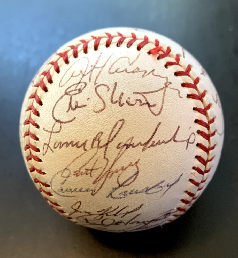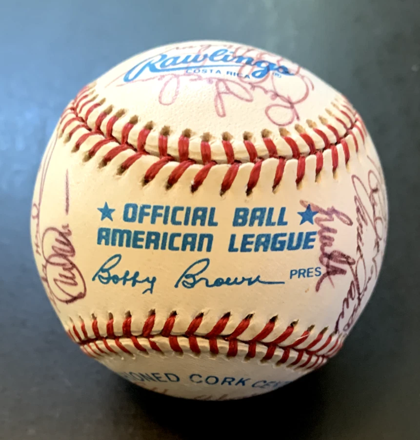 This is a vintage Official Rawlings Bobby Brown Baseball signed by the Oakland Athletics. This circa 1991 ball features 32 signatures, featuring Tony LaRussa on the sweet spot. And Ricky Henderson, Jose Canseco, Mark McGwire. Eric Snow, Lance Blankenship, Curt Young, Carney Lansford, Joe Klink, Rick Honeycutt, Walt Weiss, Terry Steinbach, Steve Chitlin, Ernest Riles, Kirk Dressendorfer, Gene Nelson, Gene Nelson, Willie Wilson plus many more. The Ball was obtained in person and I guarantee it will pass any Third Party Authorization. Protective display case will be included. I will ship via USPS Ground Advantage and provide a Tracking Number.