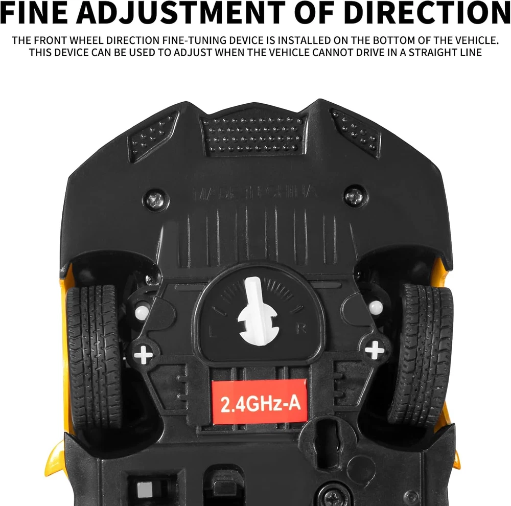 【OFFICIALLY LICENSED BY LAMBORGHINI】 1/24 model size is 7.9 x 3.6 x 1.9 inch; It is made of durable, lightweight materials and odorless spray paint, injection-molded body, strong and sturdy components to bring you an excellent racing experience. 【EASY TO CONTROL】Features a delicate and smooth profile and a remote controller with functions such as forward, reverse, left and right turns which easy to control and the car responds well.kids can enjoy great fun with this function car. 【ANTI-VIBRATION PERFORMANCE】Each wheel is equipped with a coil spring shock absorber, which can effectively prevent damage caused by vibration and protect electronic components in the body. The impact-resistant body ensures that it has strong crash resistance and can maintain good condition in many collisions. 【LED HEALIGHTS】The bright led headlights will glow with forward motion. It is out of this world when the dazzling headlights glowing in the dark. Wheels are made of high quality rubber to prevent slipping.ABS strong plastic body to prevent scratching. 【IDEAL REMOTE CONTROL CAR FOR BOYS/ADULTS】Can provide an excellent running game experience in streets, parks, backyards and other places, which is a hot topic at birthdays and other holiday parties. The remote control car is the best toy for children to explore the field of automobile technology. This is a great gift to help your child's brain develop. Suitable for everyone who likes this remote control car. Remote control car*1 Car*1