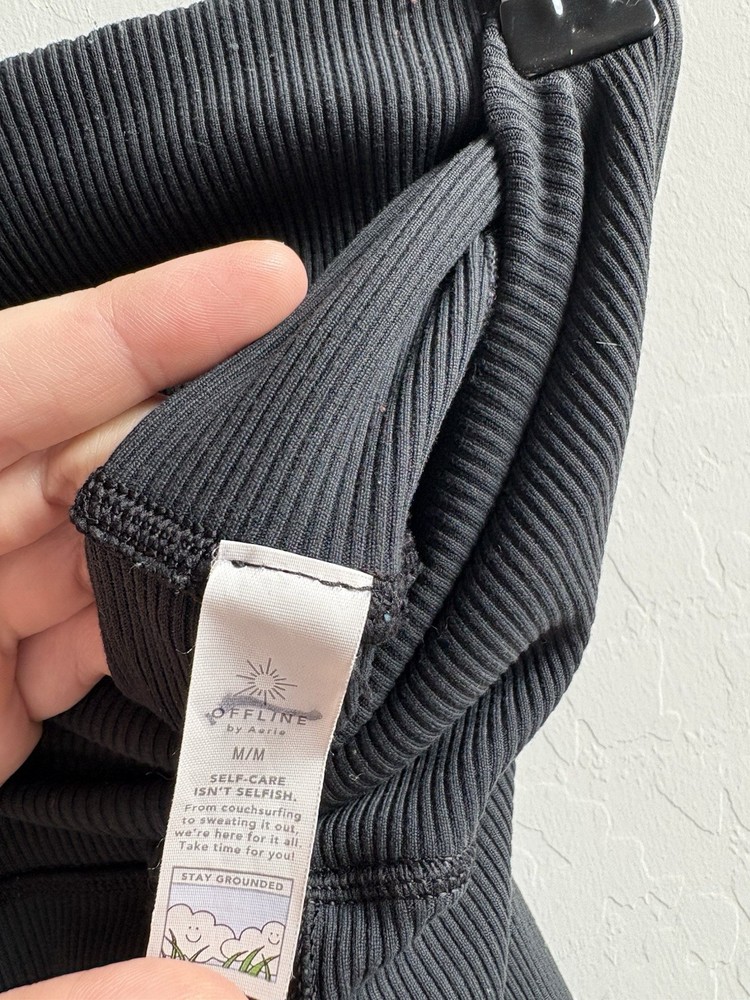 Offline By Aerie High Waisted Black Ribbed Shine 7/8 Leggings Size Medium