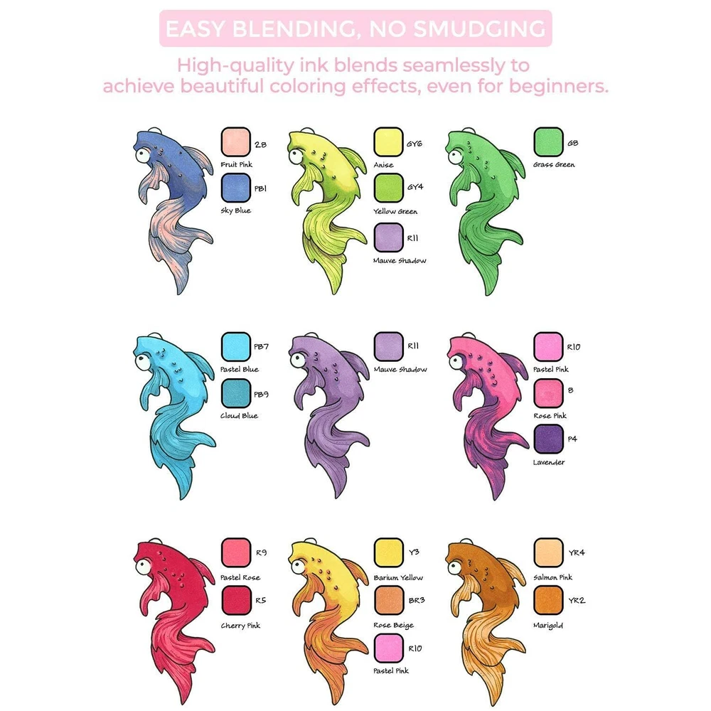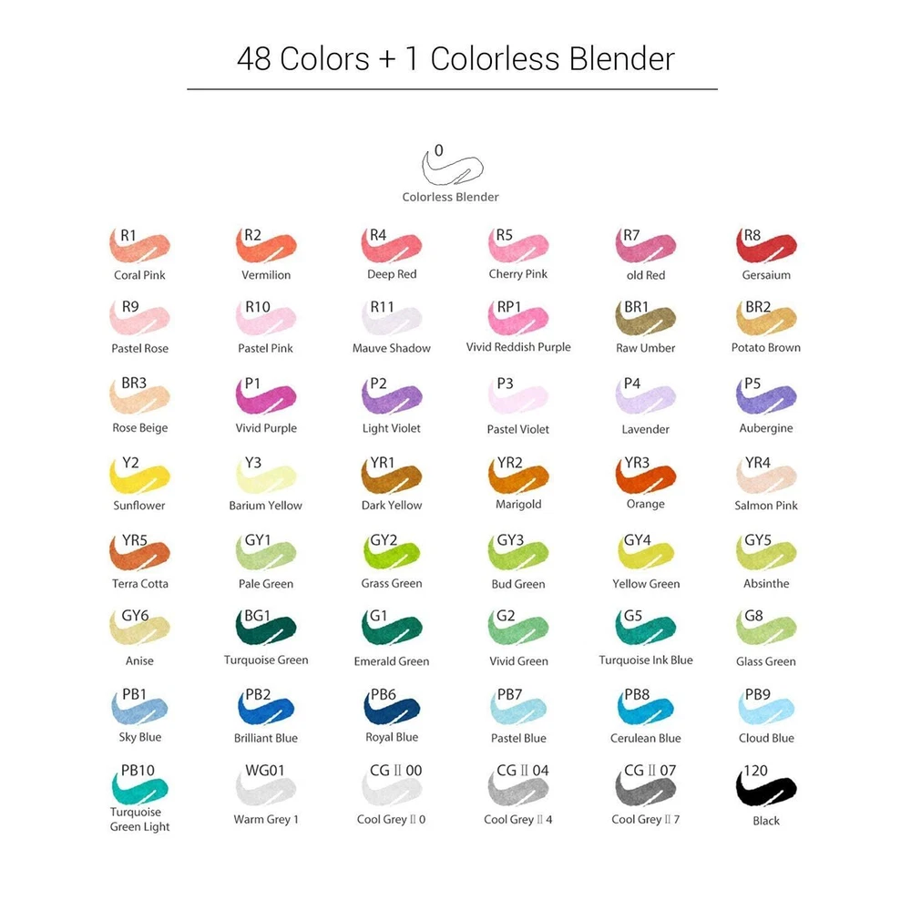 Take their coloring game to the next level! Whether it's for a budding artist or a coloring master, the Ohuhu Dual Tip Brush Marker Pen Set is a must-have for any creative toolbox. Easy to blend and mix, the 48 brilliant colors offer an almost unlimited palette of potential. And for any artist, versatility is key. Each dual-tip brush marker pen features both a brush tip and a fine tip for details of drawing styles - this is the only marker set you'll ever need! BRUSH & FINE, DOUBLE-TIP, DOUBLE THE FUN: Widen your artistic horizons with the dual-tip marker design! Choose the brush tip for sweeping, calligraphic strokes or the fine tip for details. What's more, now Ohuhu replacement brush tips is available, so you can easily replace the worn-out tips to ensure consistent and precise lines whenever you create. The only limit is your imagination REFILLABLE INK FOR A LIFETIME OF CREATIVITY: With 51 Ohuhu popular colors available for refills now and more on the way, your creativity knows no bounds. Enjoy a wide range of hues and keep your markers going for years to come. Whether you're exploring the rich colors of Honolulu, Oahu, the Kaala, or the bold hues of Molokai Series, they are refillable now. Switch between sets seamlessly and unlock endless artistic possibilities SEAMLESSLY BLENDING: Say goodbye to unsightly splotches and uneven coloring. Our high-quality ink seamlessly blends to create beautiful, professional-grade artwork, perfect for both beginners and experienced artists; Also, no more frustrating smudges or wet ink ruining your work. Our alcohol-based ink dries quickly, ensuring that your art is always clean, crisp, smudge-free, and ready to display 48 VIBRANT COLORS + 1 COLORLESS BLENDER : The rainbow is at your fingertips - choose from 48 brilliant colors and bring your ideas to life. The color spectrum is yours to explore with 48 brilliant shades to choose from, plus a colorless blender for better blending effects. From coloring books to professional masterpieces, our brush markers will breathe life into your artwork EASY IDENTIFICATION, ORGANIZATION & PORTABILITY: Don't waste time searching for the perfect color. Our markers come with color-coded caps to keep you organized and efficient. Plus, the free carrying case makes these markers perfect for any coloring adventure or as a thoughtful gift for any artist