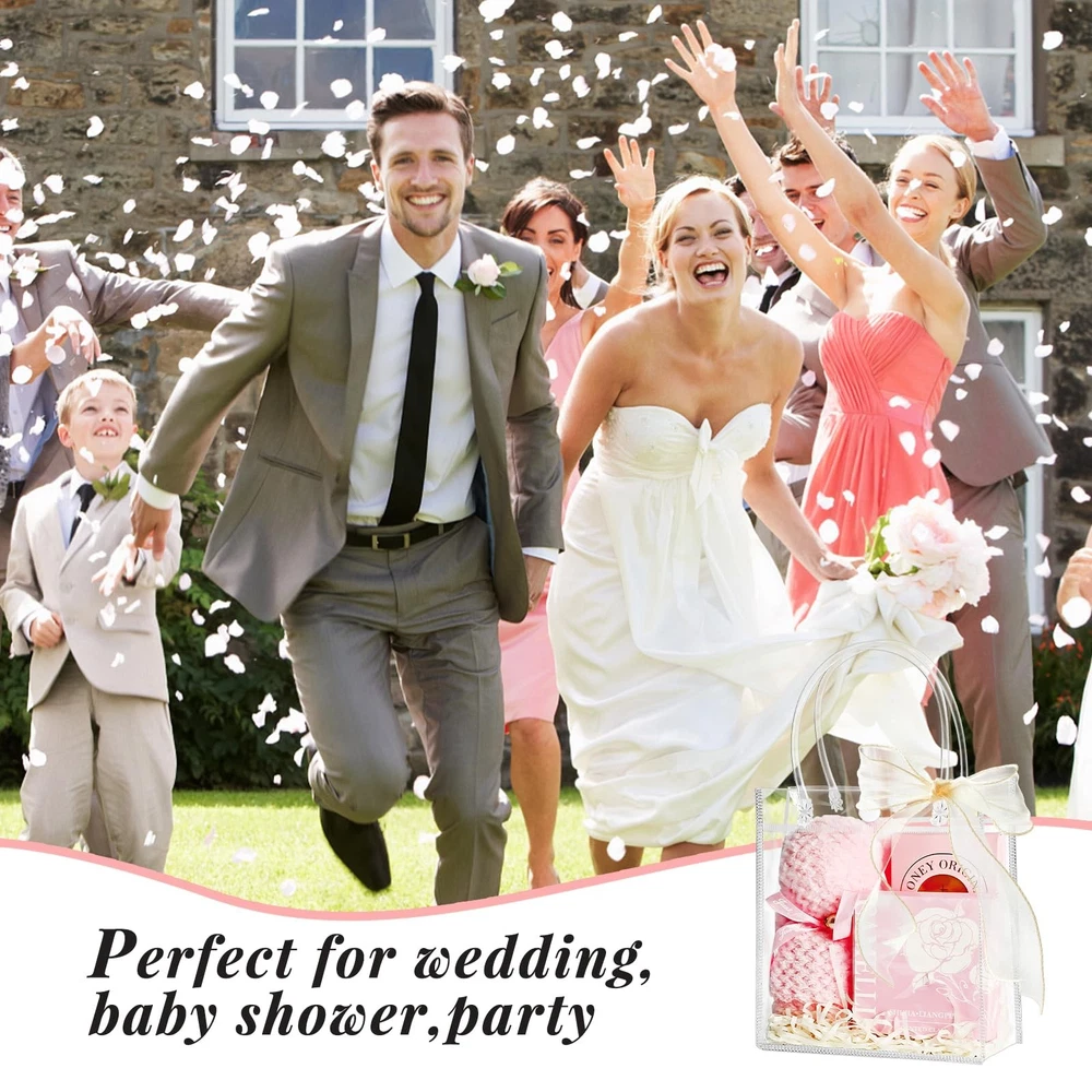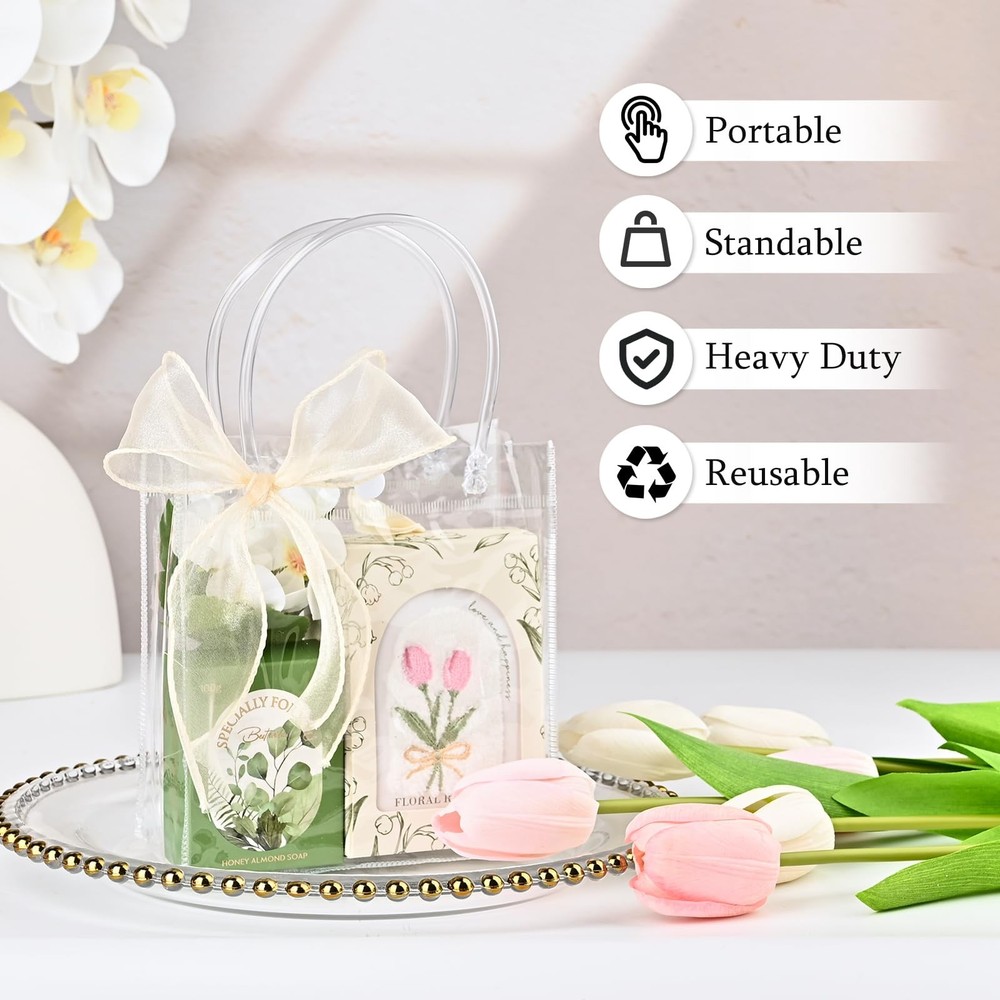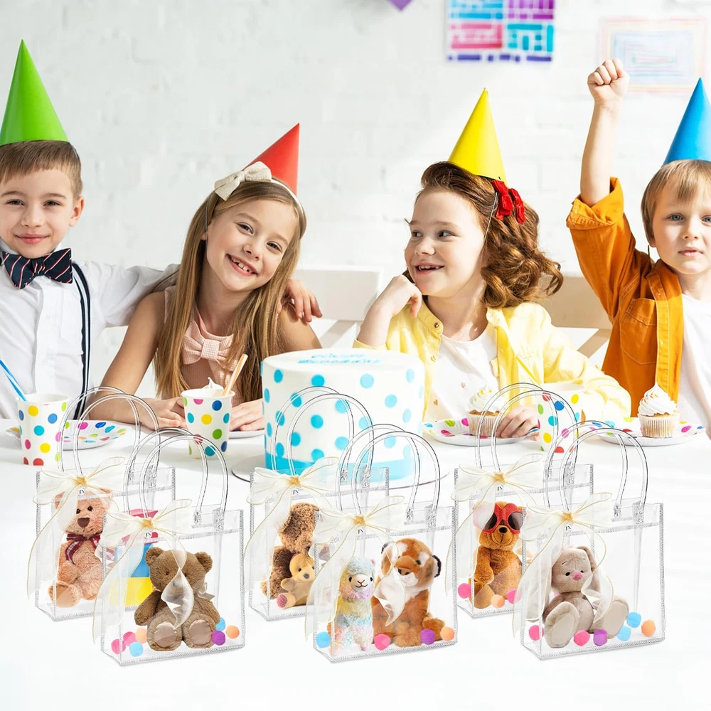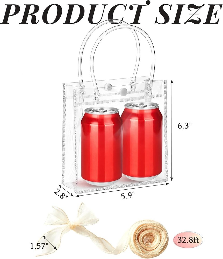 Ohuimrt 30 PCS Clear Plastic Gift 1 Count (Pack of 30), 5.9 x 6.3 x 2.8 Description Features: Mini Size: These small gift bags bulk measure 5.9 x 6.3 x 2.8 inches, great for storing small items such as candy, perfume, candle, and jewelry Package Included: You will get 30pcs clear gift bags with handles, coming with 1 roll of 32.8ft champagne ribbon. You can share the extra bags with family and friends Premium Materials: Our clear plastic bags are made of high quality PVC plastic, lightweight, waterproof, transparent and reusable. Compared with ordinary plastic bags or paper bags, they are stronger and more sturdy Practical Design: Our gift wrap bags are designed with buttons that are easy to close and open, fixing the mouth of the bag to keep items from falling out. Expanding to a square bottom ensures the bag can stand without support Wide Application: You can use our party favor bags with handles for weddings, birthdays, engagements, baby showers, bridal showers, celebrations, parties and other occasions Product Details: Handling We will ship all orders within 1 business day of payment. Delivery We Do Not Ship Outside of the Continental US. Return Policy All items qualify for returns within 30 days of receipt. Buyer is responsible for return shipping on any item that is not damaged. Feedback We take our reputation seriously, we buy and sell online, so we understand the value of trust. If you are unsatisfied with your order, please contact us and we will work with you to resolve it to your satisfaction.