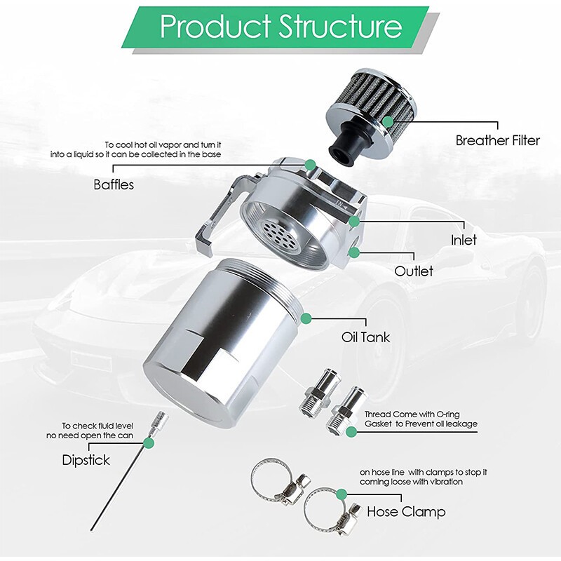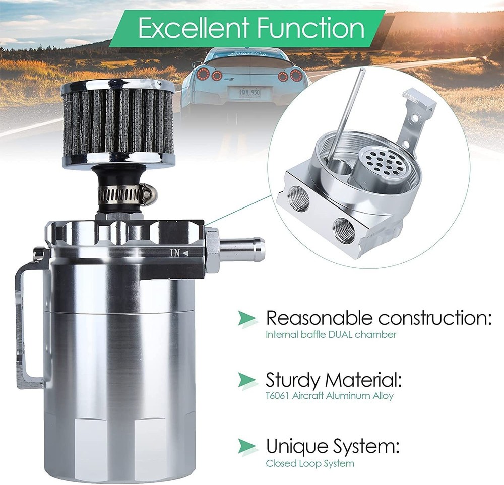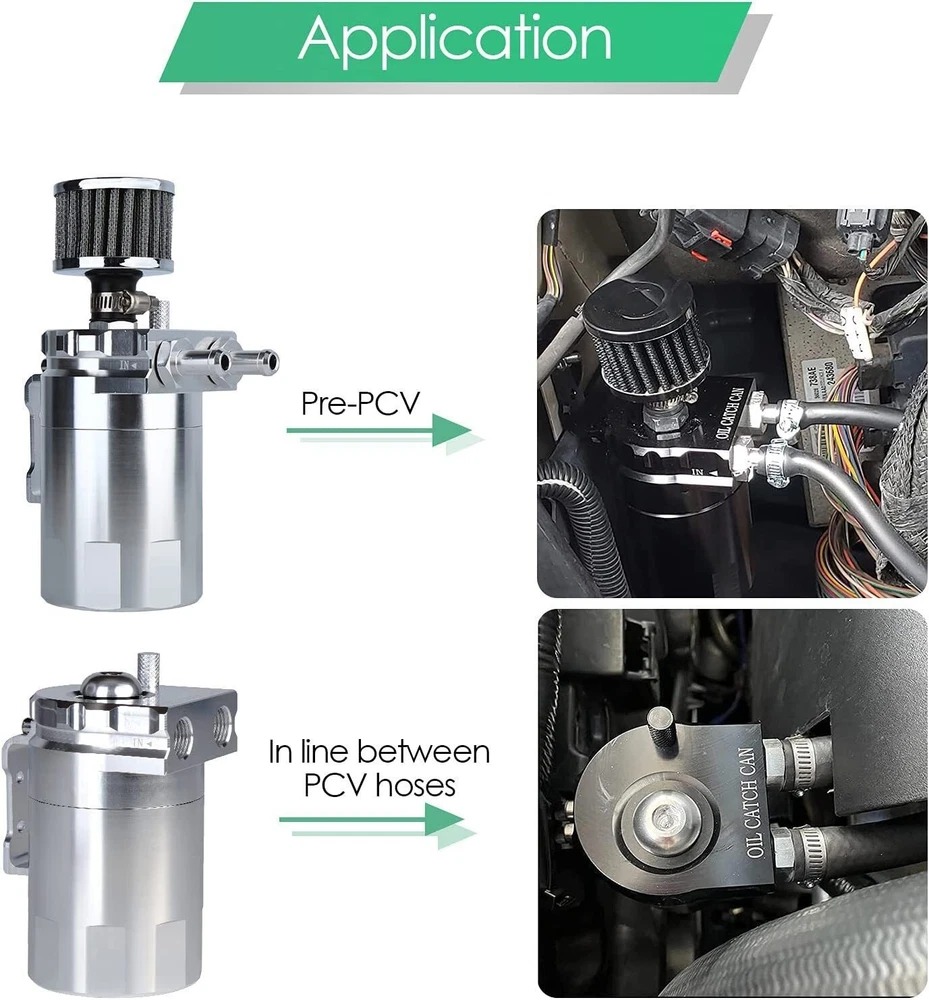 Oil Catch Can Kit Reservoir Polished Tank + Breather Filter Universal Aluminum S 🔧 Universal 300ML Polished Oil Catch Can Kit – Aluminum (Silver) 🔧 【Lightweight Aluminum | M16×1.5 Thread | 3-Month Warranty】300ML Capacity + Breather Filter | 6/8/10mm Adapters | Freeze Risk Note 1. Core Compatibility & Specifications 🔹 Universal Fit Works with most cars – requires sufficient installation space (no specific make/model restrictions). Thread Size: Inlet/outlet M16×1.5 – compatible with standard PCV system connections. Adapter Options: 2 × 6mm, 2 × 8mm, 2 × 10mm outer diameter fittings – fits different hose sizes. 🔹 Key Dimensions Capacity: 300ML – ample for collecting oil vapors and moisture during daily use. Hose Details: 1m (39.4") NBR fuel line; 3/8" ID, 2/3" OD – flexible for routing. 2. Key Features & Function 🔹 Premium Construction Material: Lightweight aluminum with polished silver finish – durable, corrosion-resistant, and stylish. Baffled Design: Cools hot oil vapor into liquid, catching oil and moisture to prevent intake buildup. Breather Filter: Included for dual installation options (vent system or sealed inline PCV). 🔹 Engine Protection Collects crankcase steam, reducing intake branch steam and secondary combustion. Minimizes carbon deposition, keeps the engine clean, and extends service life. Prevents dirt/oil from entering the engine via the intake system – boosts horsepower. 🔹 Secure & Easy Installation Includes bracket, bolts, and clamps – ensures stable mounting and prevents hose detachment. Step-by-step installation guide provided (see below) – no complex modifications needed. Freeze Risk Note: In freezing temperatures (≤0℃), crankcase moisture may freeze – clean regularly or revert to original PCV hose. 3. Technical Specifications Parameter Category Detailed Specifications Condition 100% Brand New Product Type Universal Baffled Oil Catch Can Kit Material Light-Weight Aluminum (polished silver finish) Color Silver Capacity 300ML Thread Size M16×1.5 (inlet/outlet) Hose & Adapters 1m NBR fuel line; 2 × 6mm/8mm/10mm outer diameter fittings Key Components Baffled tank, breather filter, bracket, bolts, clamps, O-ring seals (implied) Warranty 3-Month Warranty 4. Package Included 1 × 300ML Baffled Oil Catch Can (Silver) 1 × Breather Filter 1 × 1m NBR Fuel Line 2 × Mounting Bolts 2 × 6mm Fittings + 2 × 8mm Fittings + 2 × 10mm Fittings 2 × Hose Clamps 1 × Mounting Bracket 5. Installation & Maintenance Tips 🔹 Step-by-Step Installation Remove the car hood for easy access to the PCV system. Disconnect the existing PCV hose and set it aside. Wrap non-slip tape around the catch can’s threaded parts for a secure seal. Use your own nuts/bolts (or included hardware) to mount the bracket to the vehicle. Attach the oil catch can to the bracket using the provided bolts. Cut the new NBR hose to the desired length, then clamp it to the catch can’s inlet/outlet. Connect the other end of the hose to the PCV system – use the appropriate 6/8/10mm adapter. Tighten all clamps and fittings to ensure no leaks. 🔹 Maintenance Tips Check fluid level regularly (via visual inspection of the polished tank). Empty the catch can when it’s ½ to ⅔ full to avoid overflow. In near-freezing temperatures: Clean weekly to remove moisture; in freezing temps, disconnect and use original PCV hose. 🔹 After-Sales Support Fitment Issues: If adapters don’t match your hoses, contact the seller for guidance. Defects: If parts arrive damaged (cracked can, missing components) or leak, reach out within the 3-month warranty. Feedback First: Contact the seller before neutral/negative feedback – all issues will be resolved ASAP. This universal oil catch can is a reliable upgrade for engine protection! It’s easy to install, versatile, and built to keep your engine clean. 🚗🔧