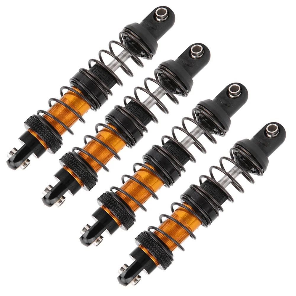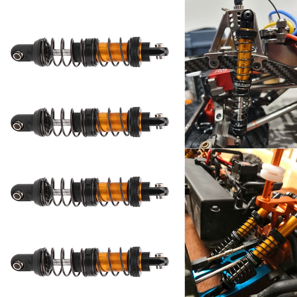 Feature: 1. Made of high quality metal alloy, durable and stable, having long service time. 2. Excellent accessory for remote control model car, which is delicate and durable when used. 3. Easy to install and double spring designs with spare spring. Meeting your demands. 4. Oil suspension shocks struts damper, upgrade parts of remote control car model. 5. CNC machining and anodized to make it look good. Beautiful appearance. Specification: Condition: 100% Brand New Item Type: RC Car Shock Struts Damper Material: Metal Color: Black Orange Shock Struts Damper Body: Approx. 10mm / 0.4in Outside Diameter Of Spring Body: Approx.15mm / 0.6in Diameter of Axle: Approx.3.5mm / 0.1in End Rod Hole: Approx. 3mm / 0.12in End Rod Width: Approx. 7.5mm / 0.3in Spring Diameter: Approx. 1mm / 0.04in Fitment: Fit for Tamiya CC01 (70CM / 80CM) Fit for Trx-4 Axial SCX10 D90 / D110 (90CM / 100CM / 110CM) Fit for RR10 (110mm / 120mm) 70mm Size Hole to Hole (Compression): Approx. 60mm / 2.4in Hole to Hole (Uncompressed): Approx. 70mm / 2.8in Total Length: Approx. 80mm / 3.1in Stroke Length: Approx. 10mm / 0.4in 80mm Size Hole to Hole (Compression): Approx. 65mm / 2.6in Hole to Hole (Uncompressed): Approx. 80mm / 3.1in Total Length: Approx. 90mm / 3.5in Stroke Length: Approx. 15mm / 0.6in 90 mm Size Hole to Hole (Compression): Approx. 70mm / 2.8in Hole to Hole (Uncompressed): Approx. 90mm / 3.5in Total Length: Approx. 100mm / 3.9in Stroke Length: Approx. 20mm / 0.8in 100mm Size Hole to Hole (Compression): Approx. 75mm / 3in Hole to Hole (Uncompressed): Approx. 100mm / 3.9in Total Length: Approx. 110mm / 4.3in Stroke Length: Approx. 25mm / 1in 110mm Size Hole to Hole (Compression): Approx. 80mm / 3.1in Hole to Hole (Uncompressed): Approx. 110mm / 4.3in Total Length: Approx. 120mm / 4.7in Stroke Length: Approx. 30mm / 1.2in 120 mm Size Hole to Hole (Compression): Approx. 85mm / 3.3in Hole to Hole (Uncompressed): Approx. 120mm / 4.7in Total Length: Approx. 130mm / 5.1in Stroke Length: Approx. 35mm / 1.4in Package List: 4 x Shock Struts Damper 4 x Spare Spring Note: 1. Please allow 1‑3mm error due to manual measurement. Thanks for your understanding. 2. Monitors are not calibrated same, item color displayed in photos may be showing slightly different from the real object. Please take the real one as standard. 3.Please note that the new type and old type of this product will be sent randomly, and make sure you will not mind before ordering. 4.The product does not need to be refueled, it can be directly loaded into the vehicle for use. If refueling is required, the customer needs to prepare a sealing ring to seal it.