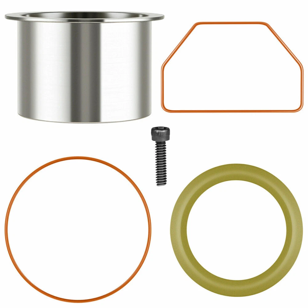 Fitment: Compatible with both the single cylinder oil-free pumps and the twin cylinder oil-free pump, fits for DeVilbiss, for Porter Cable, for Sears Craftsman, for Snap On, for Ex-Cell, for Air America, for Charge Air Pro, for Grainger, for Stanley Black, for Decker and many other privately labeled air compressors. Fits model number 165080. Features: 1) When your compressor runs so loud or does not build pressure, please use this compressor ring kit to fix it, our high quality ring kit will fix the problem and make the compressor working like a new one 2) Extremely easy to install the kit, just take the cylinder system apart, the new sleeve has a rolled bottom so you need to remove the piston from the shaft and slide it up over piston, put the ring on piston before inserting into sleeve will be easier. 3) Made of high class quality steel and rubber, the cylinder sleeve is hardened to ensure tough and high pressure withstand, and it’s rustproof and corrosion resistance. The piston ring and sleeve O-rings are made of specific rubber, they will seal the cylinder and provide a great airtightness to ensure minimum loss of gases. They are very durable that could serve for many years. Installation Guide Step 1. Uninstall the parts as direction: fill pipe-top cylinder head- valve plate assembly-cylinder sleeve- belower fan- piston rod. Step 2. Install the piston ring on the piston rod. Step 3. Insert the piston rod into the sleeve. Step 4. Attach the piston on the shaft and tight the screw. Step 5. Replace the both sleeve o rings on the valve plate assembly, then cover to the piston back. Step 6. Torque the cylinder head on and install the other parts back as direction. Package included: 1 x D25837 Coated Cylinder Sleeve 1 x DAC-308 Coated Oil Free Piston Ring 1 x SSF-3158-1 Piston Rod Cap Screw 1 x SSG-8156 Valve Plate to Cylinder Sleeve O-Ring 1 x ACG-45 Cylinder head to Valve Plate O-Ring