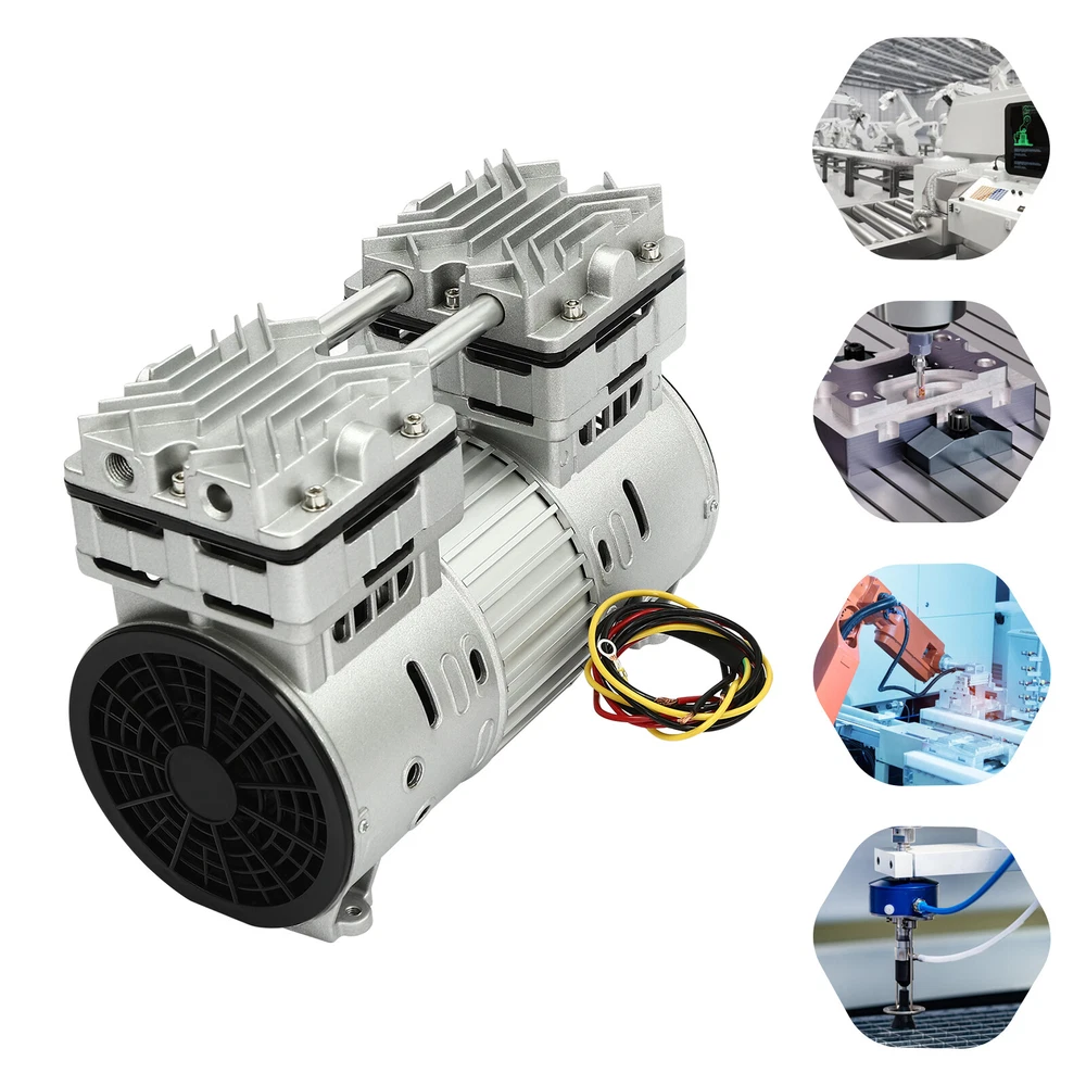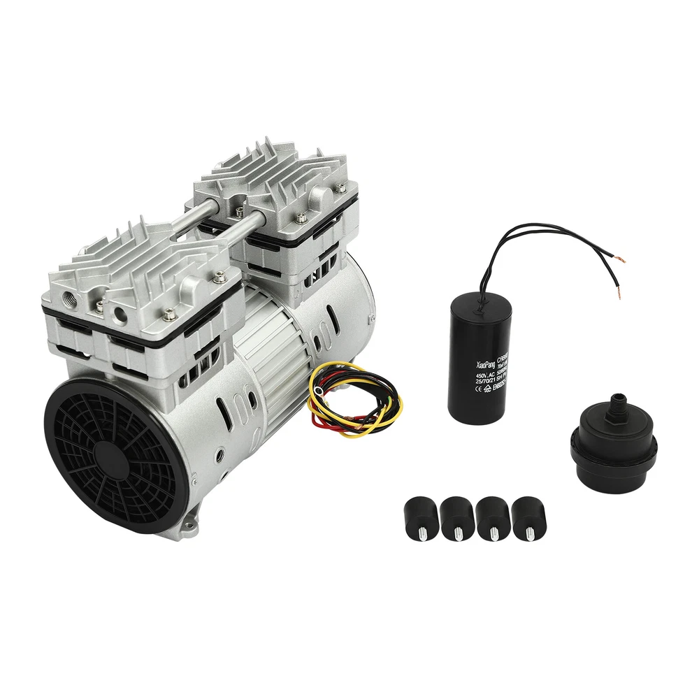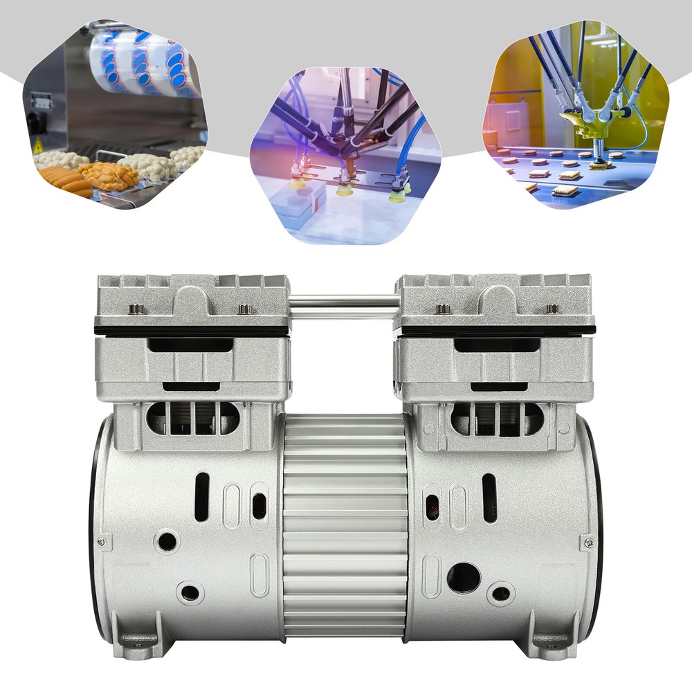 Description This oil-free vacuum pump operates without any fuel and does not pollute the environment, making it a popular choice for food companies, pharmaceutical companies, and electrical companies. Made of high-quality copper, aluminum, and iron, it has good heat dissipation and is durable. Its pure copper motor ensures stable operation, low noise, and high efficiency, providing a better user experience. Key Features Sturdy and Durable: It is made of high-quality copper, aluminum, and iron and adopts a painting process, making it robust, rust-proof, and corrosion-resistant, ensuring a long service life. Excellent Heat Dissipation: The powerful cooling fan and multiple heat-sink holes on the machine effectively dissipate heat to ensure continuous work without overheating, thus extending its service life. High Efficiency: It adopts a pure copper motor with 800W power, a high speed of 1700rpm, and low loss, which can greatly improve work efficiency. Environmentally Friendly and Convenient: This oil-free vacuum pump can be operated without any media, making it environmentally friendly. It also eliminates the need for regular maintenance and frequent refueling, which is very time-saving and convenient. Low Noise: All-copper motor, the external silencer, and the thickened wall ensure good noise reduction(65dB), equivalent to the sound produced by high-power washing machines, giving you a quieter and more comfortable working environment. High Safety: It has overload protection and overheating protection. When the temperature reaches 275°F, it automatically cuts off the power supply to prevent the motor from burning out due to high-temperature operation. In addition, its insulation level reaches level B, ensuring safe use. Thoughtful Design: The pre-drilled holes on the base ensure firm installation on the countertop, making it stable to operate. Its compact size(11.06*5.04*8.5in) will not occupy much countertop space. Guaranteed Customer Service: We aim to provide quality products and services. If you have problems, please feel free to contact us. We will reply and solve the problem for you as soon as possible. Details Rubber Foot Pads : They help dampen vibrations, ensure stable running, and avoid scratching the countertop. Precision Thread: Standard G1/4 thread ensures a sturdy connection and is not easy to fall off. Application It is suitable for gas tightness experiments, surgical vacuum suction, food processing, medical machinery, laboratory, beauty equipment, medical, vacuum molding, plastics, hydraulic presses, food packaging, and processing, hospital negative pressure systems, environmental protection industries, electronics industries, laboratories, chemical industries, central vacuum systems, printing industries, vacuum defoaming, and vacuum adsorption. Specification Material: Copper, Aluminum, Iron Process: Painting, Stamping Lubrication Type: Oil-Free Motor Type: All Copper Motor Assembly Required: Yes Style: Modern Color: Silver Power Source: Corded Electric Insulation Class: B Capacitor: Red Line(70UF) Voltage: 110V 60Hz Power: 800W Noise: 65dB Speed: 1700rpm Thread: G1/4 Rated Pressure: 8Bar Max. Vacuum: -0.92Bar Air Flow Speed: 125L/132Qt/min Ambient Temperature: 0-45°C/32-113°F Overheating Protection: 135°C/275°F Power Cable Length: 55cm/21.7in Capacitor Cable Length: 35cm/13.78in Product Size: 28.1*12.8*21.6cm/11.06*5.04*8.5in Packing Size: 25*12*11cm/9.8*4.7*4.3in Gross Weight: 10.96kg/24.16lbs Package Included 1 x Oil-free Vacuum Pump 1 x Silencer 1 x Capacitor 4 x Foot Pads Notes This item does not include a filter or pressure-regulating valve. Please do not use it to pump liquid, alcohol, or oil. Please allow the slight color difference caused by the shooting light and 1-3cm error due to manual measurement, and make sure you do not mind before ordering. Payment Delivery details Terms of sales About us Contact us Payment We accept ebay payment 。 Fees such as import duties, taxes are not included in the item price or shipping costs. These charges are the buyer's responsibility. Delivery details Shipping: 2-9 working days to: USA Terms of sales We maintain high standards of excellence and strive for hundred percent customer satisfaction. Feedback is very important to us. We hope that you contact us immediately before you give neutral or negative feedback, so that we can address your concerns. It is impossible to address issues if we do not know about them! About us Your satis faction is our ultimate goal. We work hard to earn your trust and future business. Our certified technicians have tested each item before shipping. The unit comes with 1 year limited warranty on all manufacturing defects. a) If you receive a defective item, you may return it or ask for a discount. Please contact us within 14 days after you receive the package. b) What you returned must be intact and in its original packaging as re? u. Customer is responsible for shipping costs of the returned item. c) We will cover the cost of shipping back t with the shipping rate indicated in the registration page. We will send you a new unit or refund the full payment you paid. Thank you. Contact us Business Hour Business Hour: Monday To Friday: 8:30 AM to 5:00 PM (Beijing China time) Due to time zones, our reply to your questions may not be immediately. But within above working time, we will reply your email within 24 hours. If it's non-workdays, please kindly be patient and wait till Monday. Please contact us with ebay message. Please feel free to contact us if you have any questions. Monday To Friday: 8:30 AM to 5:00 PM (Beijing China time) Due to time zones, our reply to your questions may not be immediately. But within above working time, we will reply your email within 24 hours. If it's non-workdays, please kindly be patient and wait till Monday. Please contact us with ebay message. Please feel free to contact us if you have any questions. On Feb 27, 2026 at 17:46:50 PST, seller added the following inf