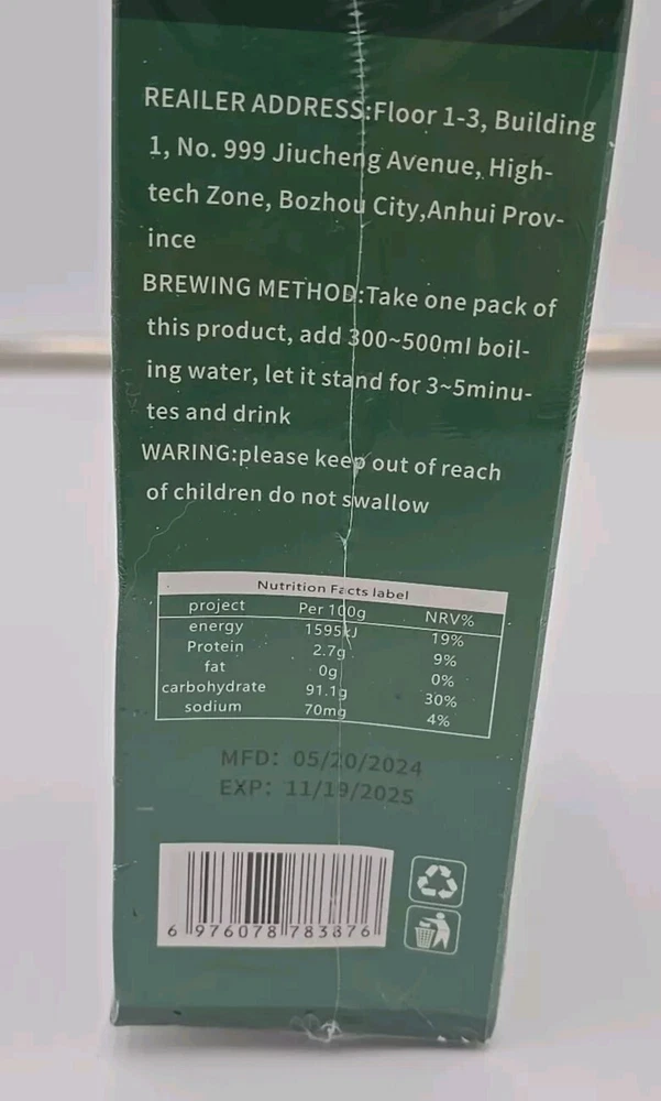 Expiration Date:11/25Product:Tea & InfusionMPN:Does Not ApplyType:As shownCalories per Serving:0Form:BaggedAllergens:naFood Aisle:Pantrygtin13:Does not applyBrand:UnbrandedNumber of Servings:15Serving Size:1 CupUPC:Does not applyFood Specifications:Dye Free