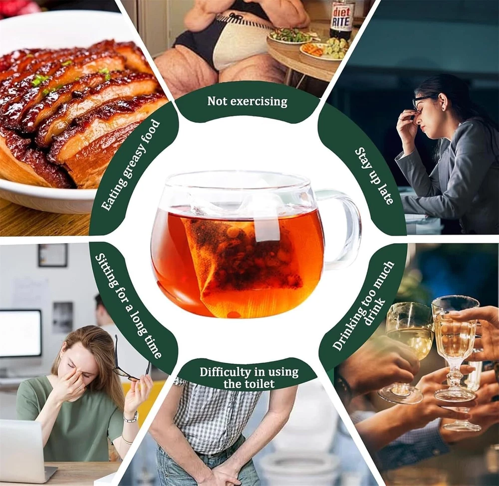 Product name: Oil-Reducing Tea Formula: Cinnamon, winter melon, double red rose, lotus leaf, Tuckahoe, buckwheat, orange peel, licorice, hawthorn, gardenia Quantity: 1BOX=15bags Storage: dry, sealed, low temperature. Refer to the code on the box for production date/expiration date. Note :(shelf life 18 months, all the latest production, high quality materials). Palate: Rich and sweet. Taste carefully, you will find the aroma of winter melon, double red rose, hawthorn. The tea is deep in color and rich in essential ingredients. With light hawthorn sour taste, tea taste delicious. Formula: The shown tea includes cinnamon, winter melon, double red rose, lotus leaf, Tuckahoe, buckwheat, orange peel, licorice, hawthorn, gardenia, 10 kinds of herbs, according to the traditional formula, after low temperature baking, grinding, packaging. The dried tea has a clear texture, is uniform in size, and is dried in a fresh state using a special process to retain the moisture of each herb. Brewing method: Once bagged, place in a cup and pour 95-100°C. In five minutes, you'll be ready to drink. Each bag can be brewed 5-6 times.
