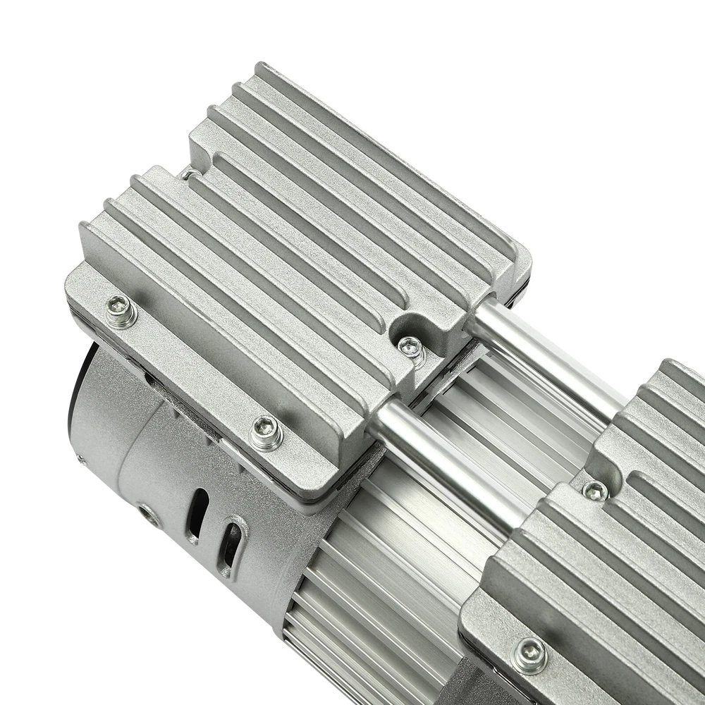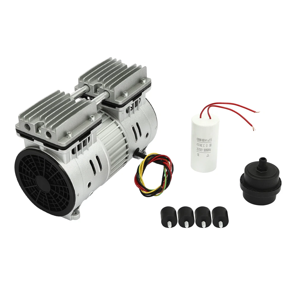 Package Included 1 x Oil-free Vacuum Pump 1 x Silencer 1 x Capacitor 4 x Foot Pads Specification Material: Copper, Aluminum, Iron Process: Painting, Stamping Lubrication Type: Oil-Free Motor Type: All Copper Motor Assembly Required: Yes Style: Modern Color: Silver Power Source: Corded Electric Insulation Class: B Capacitor: Red Line(60UF) Voltage: 110V 60Hz Power: 550W Noise: 65dB Speed: 1700rpm Thread: G1/4 Rated Pressure: 8Bar Max. Vacuum: -0.92Bar Air Flow Speed: 125L/132Qt/min Ambient Temperature: 0-45°C/32-113°F Overheating Protection: 135°C/275°F Power Cable Length: 55cm/21.7in Capacitor Cable Length: 35cm/13.78in Product Size: 27.1*12.8*19.4cm/10.7*5*7.6in Packing Size: 29.5*16.5*25cm/11.6*6.5*9.8in Oilless Vacuum Pump Oil Free Air Compressor Piston Compressor Pump 550W 125L/min Description This oil-free vacuum pump operates without any fuel and does not pollute the environment, making it a popular choice for food companies, pharmaceutical companies, and electrical companies. Made of high-quality copper, aluminum, and iron, it has good heat dissipation and is durable. Its pure copper motor ensures stable operation, low noise, and high efficiency, providing a better user experience. Key Features Sturdy and Durable: It is made of high-quality copper, aluminum, and iron and adopts a painting process , making it robust, rust-proof, and corrosion-resistant, ensuring a long service life. Excellent Heat Dissipation: The powerful cooling fan and m ultiple heat-sink holes on the machine effectively dissipate heat to ensure continuous work without overheating, thus extending its service life. High Efficiency: It adopts a pure copper motor with 550W power, a high speed of 1700rpm, and low loss, which can greatly improve work efficiency. Environmentally Friendly and Convenient: This oil-free vacuum pump can be operated without any media, making it environmentally friendly . It also eliminates the need for regular maintenance and frequent refueling, which is very time-saving and convenient. Low Noise: All-copper motor, the external silencer, and the thickened wall ensure good noise reduction(65dB), equivalent to the sound produced by high-power washing machines, giving you a quieter and more comfortable working environment. High Safety: It has overload protection and overheating protection. When the temperature reaches 275°F, it automatically cuts off the power supply to prevent the motor from burning out due to high-temperature operation. In addition, its insulation level reaches level B, ensuring safe use. Thoughtful Design: The pre-drilled holes on the base ensure firm installation on the countertop, making it stable to operate. Its compact size(10.7*5*7.6in) will not occupy much countertop space. Guaranteed Customer Service: We aim to provide quality products and services. If you have problems, please feel free to contact us. We will reply and solve the problem for you as soon as possible. Details Rubber Foot Pads : They help dampen vibrations, ensure stable running, and avoid scratching the countertop. Precision Thread: Standard G1/4 thread ensures a sturdy connection and is not easy to fall off. Application It is suitable for gas tightness experiments, surgical vacuum suction, food processing, medical machinery, laboratory, beauty equipment, medical, vacuum molding, plastics, hydraulic presses, food packaging, and processing, hospital negative pressure systems, environmental protection industries, electronics industries, laboratories, chemical industries, central vacuum systems, printing industries, vacuum defoaming, and vacuum adsorption. Specification Material: Copper, Aluminum, Iron Process: Painting, Stamping Lubrication Type: Oil-Free Motor Type: All Copper Motor Assembly Required: Yes Style: Modern Color: Silver Power Source: Corded Electric Insulation Class: B Capacitor: Red Line(60UF) Voltage: 110V 60Hz Power: 550W Noise: 65dB Speed: 1700rpm Thread: G1/4 Rated Pressure: 8Bar Max. Vacuum: -0.92 Bar Air Flow Speed: 125L/132Qt/min Ambient Temperature: 0-45°C/32-113°F Overheating Protection: 135°C/275°F Power Cable Length: 55cm/21.7in Capacitor Cable Length: 35cm/13.78in Product Size: 27.1*12.8*19.4cm/10.7*5*7.6in Packing Size: 29.5*16.5*25cm/11.6*6.5*9.8in Net Weight: 8kg/17.6 lbs Gross Weight: 9kg/19.8 lbs Package Included 1 x Oil-free Vacuum Pump 1 x Silencer 1 x Capacitor 4 x Foot Pads Notes This item does not include a filter or pressure-regulating valve. Please do not use it to pump liquid, alcohol, or oil. Please allow the slight color difference caused by the shooting light and 1-3cm error due to manual measurement, and make sure you do not mind before ordering. Payment Delivery details Terms of sales About us Contact us Payment We accept ebay payment 。 Fees such as import duties, taxes are not included in the item price or shipping costs. These charges are the buyer's responsibility. Delivery details Shipping: 2-9 working days to: USA Terms of sales We maintain high standards of excellence and strive for hundred percent customer satisfaction. Feedback is very important to us. We hope that you contact us immediately before you give neutral or negative feedback, so that we can address your concerns. It is impossible to address issues if we do not know about them! About us Your satis faction is our ultimate goal. We work hard to earn your trust and future business. Our certified technicians have tested each item before shipping. The unit comes with 1 year limited warranty on all manufacturing defects. a) If you receive a defective item, you may return it or ask for a discount. Please contact us within 14 days after you receive the package. b) What you returned must be intact and in its original packaging as re? u. Customer is responsible for shipping costs of the returned item. c) We will cover the cost of shipping back t with the shipping rate indicated in the registration page. We will send you a new unit or refund the full payment you paid. Thank you. Contact us B