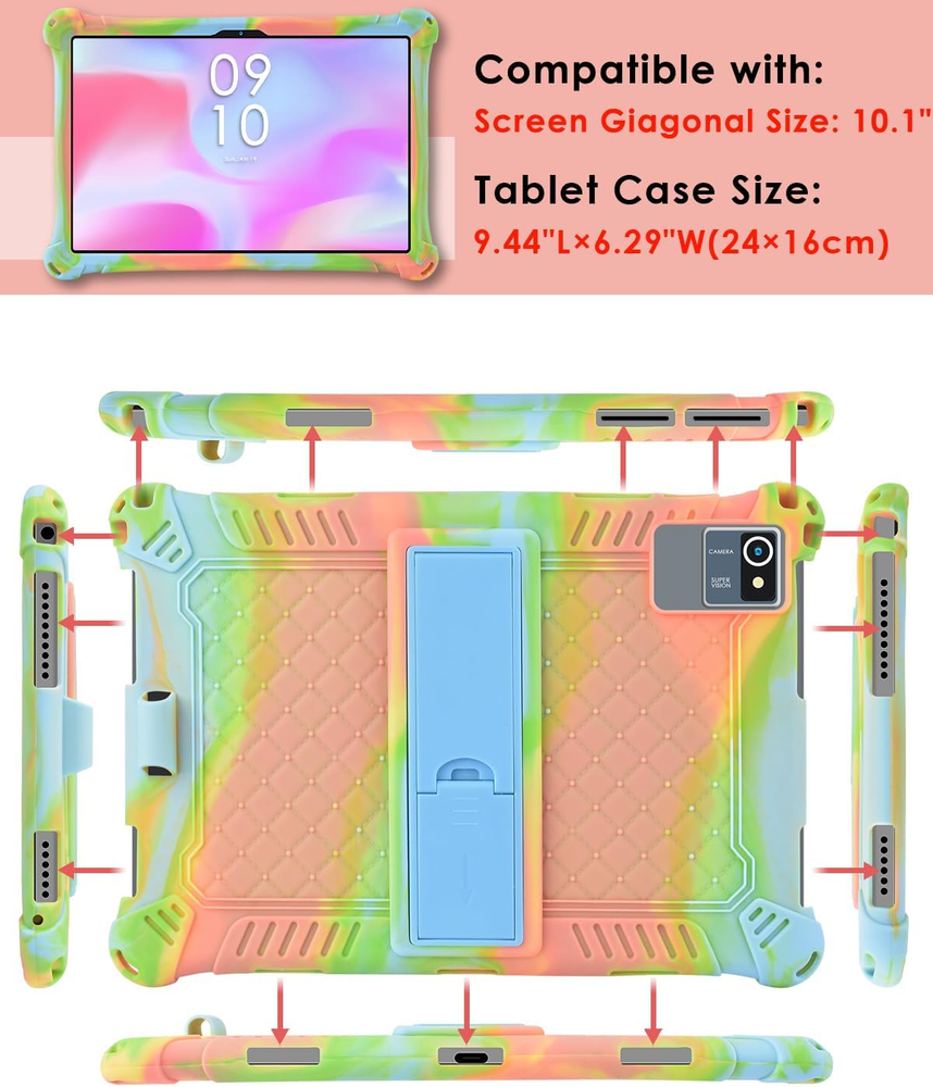 Business is our speciality NEW Okaysea 10.1 Inch Silicone Tablet Case with Stylus Pen & Shoulder Strap, Moderness 10.1" Case, Soft Portable Protective Cover for Qunyico 10.1, Azeyou Tab 6 10 Inch, Orange Pink & Blue FEATURES Model Fit: ONLY Compatible with Okaysea OKS10014 MB1001 10 inch, QunyiCO 10.1 inch, Moderness MB1001 10 inch, Azeyou T10 /Azeyou Touch 10.1 inch Tablet or more. NOT fit all 10 inch Android tablet model, please carefully check the compatibility diagram and size comparison diagram, please check the rear camera and speaker before purchase Silicone Case for QunyiCO 10.1 inch Tablet: Hoozo 10.1 inch case is made of high quality silicone. It is soft and durable, with good wear-resistant and anti-yellowing. The raised edge protects the tablet camera perfectly. Thickened corners are designed to protect the tablet from damage due to drops or bumps Stand Function: Okaysea MB1001 case with a foldable stand, allows you to adjust multiple angles for viewing and typing. Easy to access all sockets, ports and buttons without removing the shell Portable Strap: You can use the stylus pen at any time. ECOPAD 10.1 case comes with a adjustable strap, which make it easy to carry your tablet around. You can hang the tablet on the back seat of your car when you travel. Built-in pen holder to avoid losing the stylus pen Package Include: The package include 1 Silicone Stand Case, 1 Tablet Stylus Pen and 1 Shoulder Strap. NOT include the screen protector/keyoard and other accessories. NOT support auto sleep/wake Product Description The video showcases the product in use. The video guides you through product setup. The video compares multiple products. The video shows the product being unpacked. hero-video Merchant Video NOTE: The stand can be adjusted to different angles but cannot be rotated in any direction 1 Folding Stand 2 Portable Case 3 Precise Cutouts SUITABLE FOR FOLLOWING TABLET COMPATIBLE WITH Okaysea OKS10014 MB1001 10 inch Tablet COMPATIBLE WITH Moderness MB1001 10 inch Tablet COMPATIBLE WITH Freeski FSK10018 10.1 inch Tablet COMPATIBLE WITH QunyiCO Y2-O 10.1 inch Tablet COMPATIBLE WITH Hoozo HZ0010R 10.1 inch Tablet COMPATIBLE WITH Justethan P30 10 inch Tablet COMPATIBLE WITH Tabtrust 10 inch Tablet COMPATIBLE WITH ECOPAD THTH-K12C 10.1 Tablet COMPATIBLE WITH PRITOM L10 10 inch Tablet COMPATIBLE WITH Oangcc Tab-A6 10.1 inch Tablet COMPATIBLE WITH Oangcc Tab A13 10.1 inch Tablet COMPATIBLE WITH BYYBUO SmartPad T10 10.1 inch Tablet COMPATIBLE WITH BYYBUO SmartPad A10 10.1 inch Tablet COMPATIBLE WITH Azeyou T10 10.1 inch Tablet COMPATIBLE WITH Azeyou Touch 10.1 inch Tablet COMPATIBLE WITH Azeyou Tab 6 10 inch Tablet 2024 Newest COMPATIBLE WITH YESTEL T5 10 inch Android Tablet COMPATIBLE WITH lville 10.1 inch Tablet COMPATIBLE WITH MEIZE D115 10.1 inch Tablet COMPATIBLE WITH TOOTON 10.1 inch Tablet 2023 COMPATIBLE WITH Jumper M10SE 10.1 inch Tablet COMPATIBLE WITH Eitomin 10.1 inch Tablet COMPATIBLE WITH JXCNSNW TYD-109 10.1 inch Tablet COMPATIBLE WITH XNN 10 inch Tablet COMPATIBLE WITH ZONMAI MX2 10 inch Tablet COMPATIBLE WITH YUMKEM L211-GRAY 10 inch Tablet COMPATIBLE WITH JE10C 10 inch Tablet NOTE Be careful of your tablet length, width, front and rear cameras and other hole location Shoulder Strap Installation & Use of Stand 1 Shoulder Strap 2 Strap Installation 3 Colorful Other 10/10.1 inch Tablet Cases from DETUOSI Add to Cart Add to Cart Add to Cart Add to Cart Add to Cart Customer Reviews 4.0 out of 5 stars 779 4.1 out of 5 stars 235 4.1 out of 5 stars 722 4.0 out of 5 stars 779 4.3 out of 5 stars 257 Price $17.99 $ 17 . 99 $15.99 $ 15 . 99 $15.99 $ 15 . 99 $19.99 $ 19 . 99 $16.99 $ 16 . 99 Material Soft Silicone Soft Silicone Soft Silicone Soft Silicone Soft Silicone Size: 10/10.1 inch ✔ ✔ ✔ ✔ ✔ Portable Shoulder Strap ✔ ✔ ✔ ✔ ✘ Folding Bracket ✔ ✔ ✔ ✔ ✔ Multi-Angle Viewing ✔ ✔ ✔ ✔ ✔ Item model number #BB00345WQ-US Whats in the box Silicone Tablet Case, Portable Strap, Capacitor Pen Color Orange Pink & Light Blue Country of Origin China Compatible Devices Tablets Item Weight 6.7 ounces Shell Type Soft Special features Slim Fit, Travel, Kickstand Form Factor Case Package Dimensions 9.84 x 6.89 x 0.94 inches 6.89 inches x 9.84 inches x 0.94 inches. Weight: 6.7 oz Ask us anyhting Free shipping PAYMENT We accept all payments via Ebay using Credit Cards , PAYPAL , Apple Pay and many others SHIPPING We are always working hard to ensure your package arrives as soon as possible. Please understand that some factors like weather, high postal traffic, and the performance of shipping companies are outside of our control.