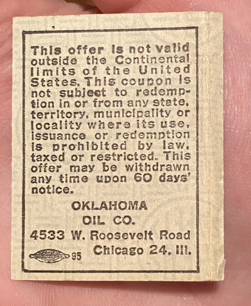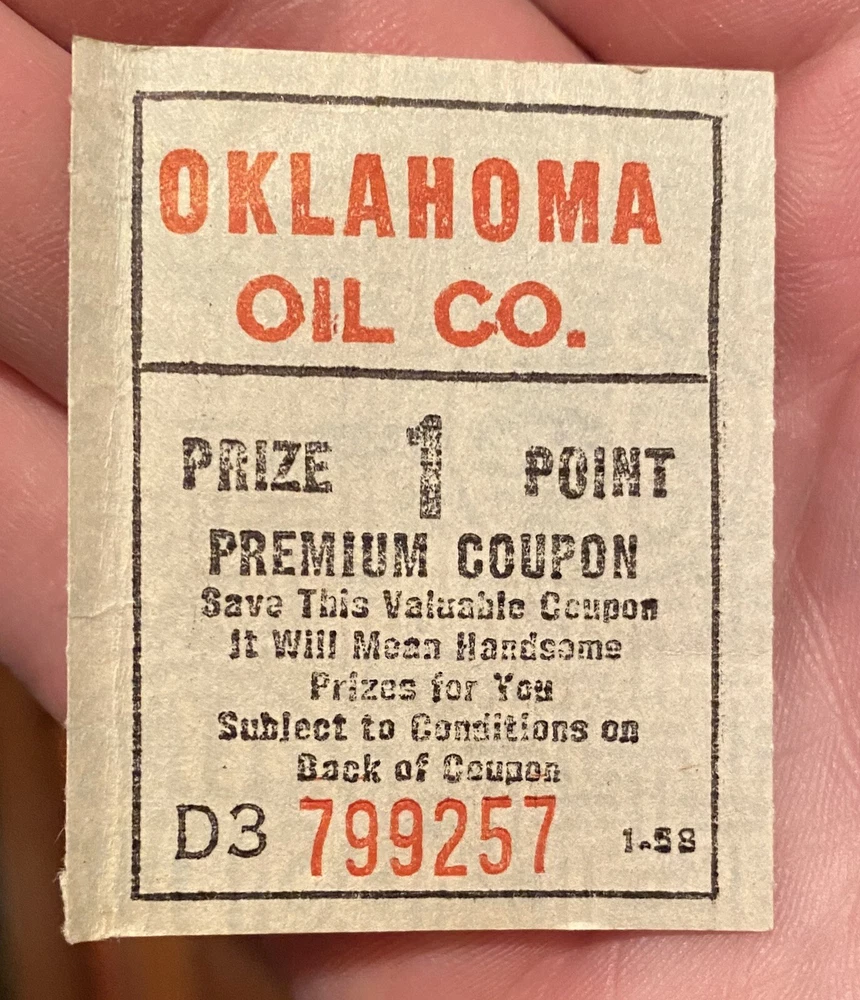 Oklahoma Gasoline Service Station Coupon - Esso Standard Oil Refinery Prize. Condition is Used. Shipped with USPS First Class Package.