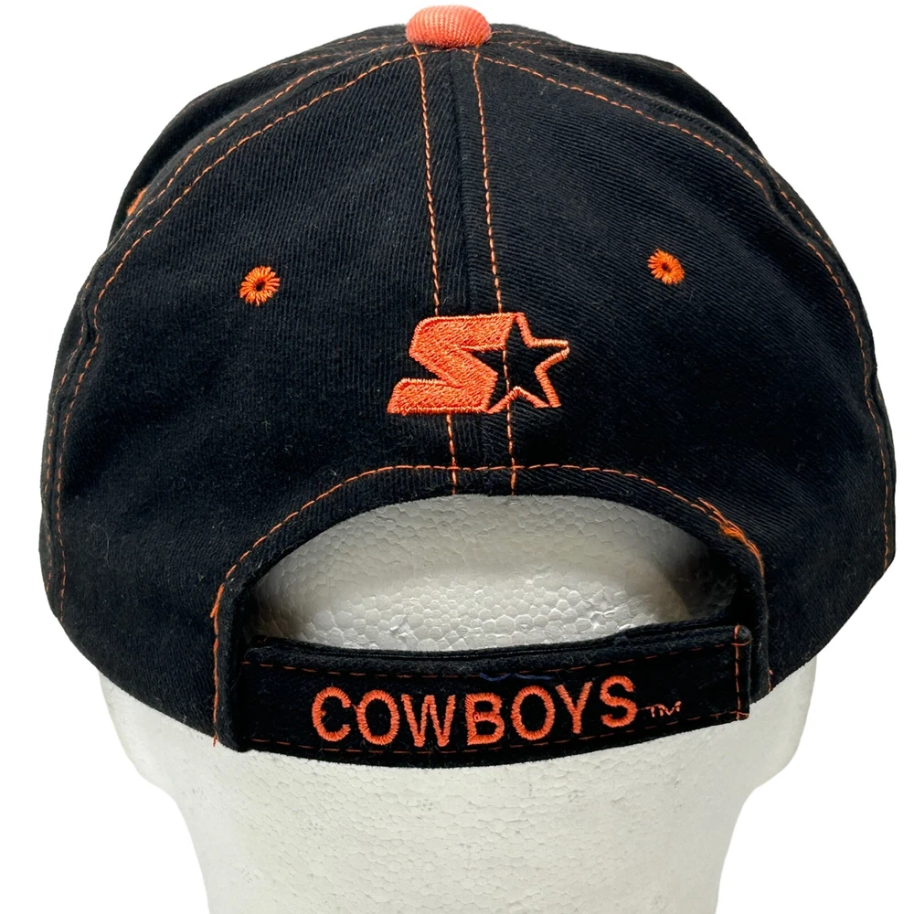 Oklahoma State Cowboys Hat University OK State OSU NCAA College Black Starter Strapback Six Panel Baseball Cap I always ship hats in a box. Condition: In gently used condition. No flaws noticed. Has been cleaned and sanitized. See photos.