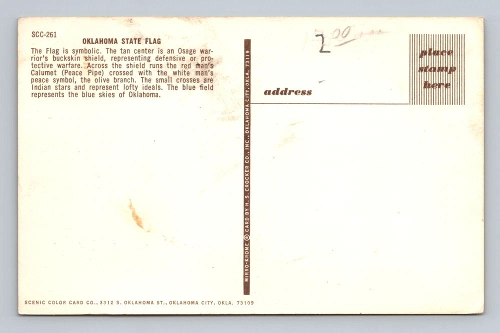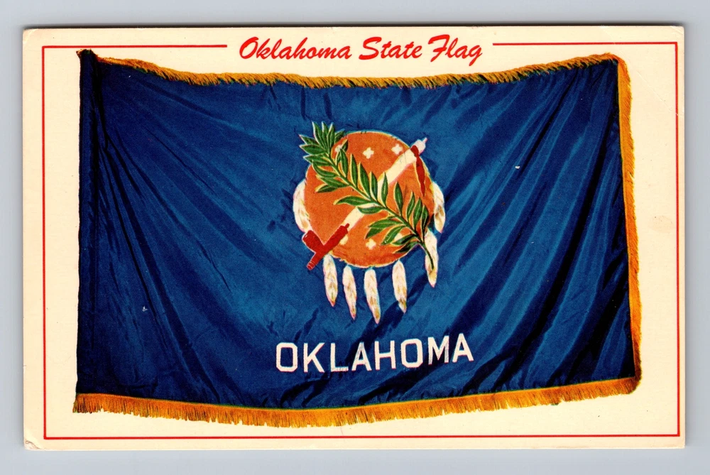 Oklahoma State Flag Greetings Osage Warrior's Shield Peace Pipe Vintage Postcard