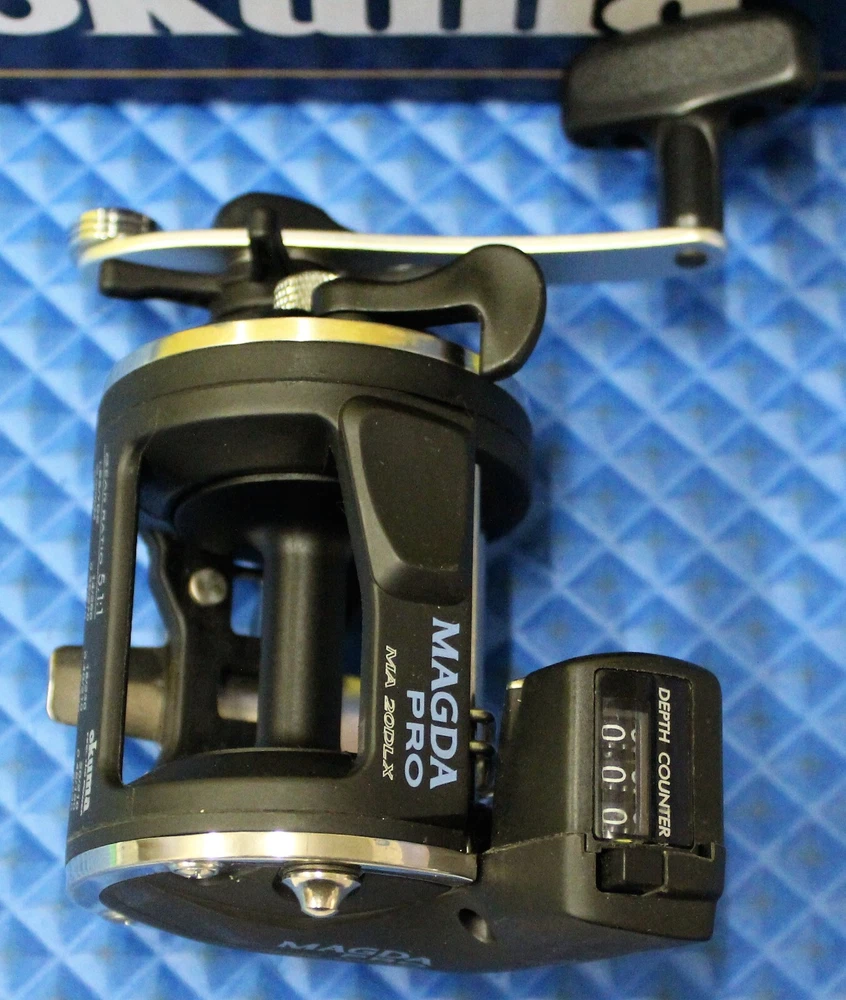 Line Recovery: 23" MPN: Magda Pro Reel Size: 20 UPC: 739998117703 Sport: Fishing, Trolling Brand: Okuma Model: MA 20DX Quantity: 2 gtin13: 739998117703 Reel Type: Trolling Reel Type: Level wind Trolling Reel Ball Bearings: 2 Line Capacity: 14/290, 18/230, 20/210 Features: Line Counter Fishing Type: Freshwater Fishing Hand Retrieve: LEFT HANDED Fish Species: All Freshwater Drag Style: Star Drag Gear Ratio: 5.1:1 Maximum Drag: 15 lbs