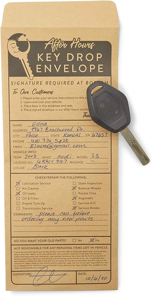 $ 14.94500 Secure After-Hours Auto Repair Drop Box Envelopes for Key Drop-Offs
