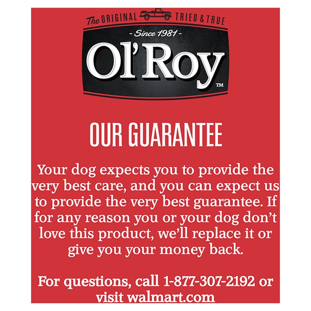 Ol' Roy Ribeye Flavor & New York Strip Flavor Cuts in Gravy Wet Dog Food Variety Pack for Dogs, 13.2 oz Can (12 Pack) provides the nourishment your dog needs with the taste they will love. At Ol' Roy, we know that a happy, healthy dog starts from within. Bright eyes, a shiny coat and boundless amounts of energy are all traits of a happy, healthy dog. Ol' Roy wants to help keep your dog at his best with this quality, high-protein dog food. Ol' Roy Wet Dog Food is a delicious food that provides your dog with the essential nutrition they need to stay healthy and happy. Each serving of this 100% complete and balanced nutrition dog food comes specially formulated, and it has a great meaty taste to encourage a healthy appetite in your beloved furry friend. Treat your dog to the nutritious benefits and flavor of Ol' Roy Ribeye Flavor & New York Strip Flavor Cuts in Gravy Wet Dog Food Variety Pack for Dogs, 13.2 oz Can (12 Pack). Ol' Roy Ribeye Flavor & New York Strip Flavor Cuts in Gravy Wet Dog Food Variety Pack for Dogs, 13.2 oz Can (12 Pack): 100% complete and balanced nutrition for adult dogs Irresistible Ribeye Flavor and New York Strip Flavor variety Made with real beef Each 13.2-ounce can in this 12 pack features a pull-tab lid that makes it easy to open and serve Feeding instructions are listed on the back for your convenience