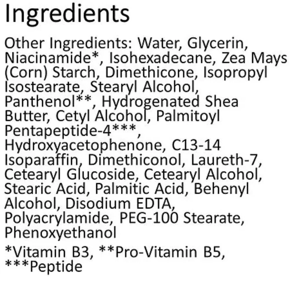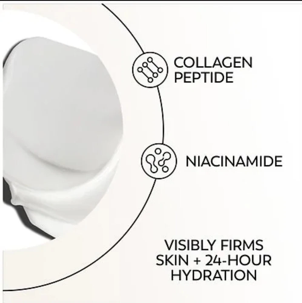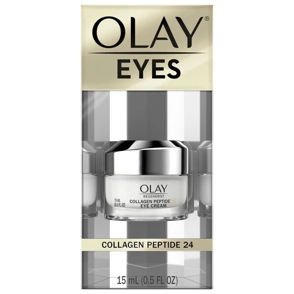 WHAT IT DOES Your skin deserves plumping moisture with OLAY Regenerist Collagen Peptide 24. We're giving you transformative Collagen Peptide in one powerful, fragrance-free eye cream. This formula absorbs quickly, giving you 24 hours of hydration without a sticky, greasy feeling. It’s specifically formulated with tried-and-true ingredients, like Collagen Peptide and Vitamin B3+, to transform the look of your skin. And the longer you use this formula, the better your skin will look and feel. Immediately after use, puffiness under your eyes will be reduced and your eyes will look refreshed. On day 1, your eyes will look younger and the skin around them will appear brighter. With one week of use, you'll see a minimization in dark circles, fine lines, and crow's feet. You’ll also see an improvement in sagginess and elasticity around your eyes. Tap this cream around your eye area morning and night for vibrant and visibly nourished eyes. Stand up for ingredients you believe in and stand firm with your skin with OLAY Regenerist Collagen Peptide 24.