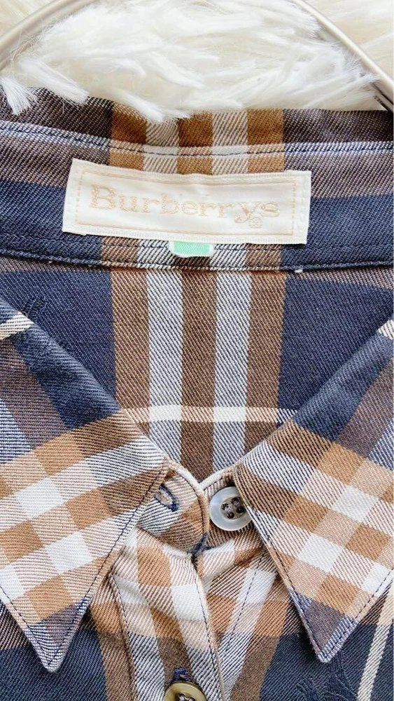 Pattern: Check Strap Type: NA Garment Care: NA MPN: NA Handmade: No Sleeve Type: NA Sleeve Length: Long Sleeve Type: Button-Up Fit: Slim Brand: Burberry Character: NA Size: 9 Theme: NA Occasion: Business, Casual, Travel gtin13: Does not apply Closure: Button Personalize: No Fabric Type: NA Style: Basic Accents: Button Size Type: Regular UPC: Does not apply Department: Women Features: NA Neckline: Collared Vintage: No Color: Blue Season: Fall, Spring, Winter Material: Cotton