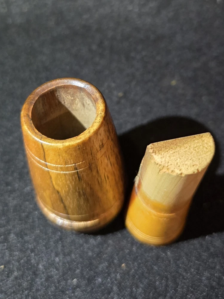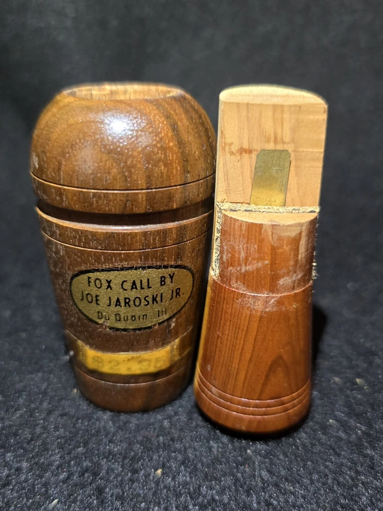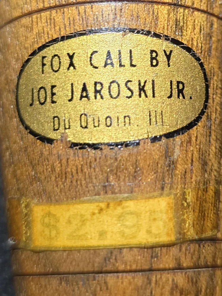 This Old FOX call by Joe Jaroski (1925-2011) is super rare it has a NICE Water Label and $2.95 Price Tag on the barrel. The call measures 2-3/4" tall. Super little call to add to any collection.