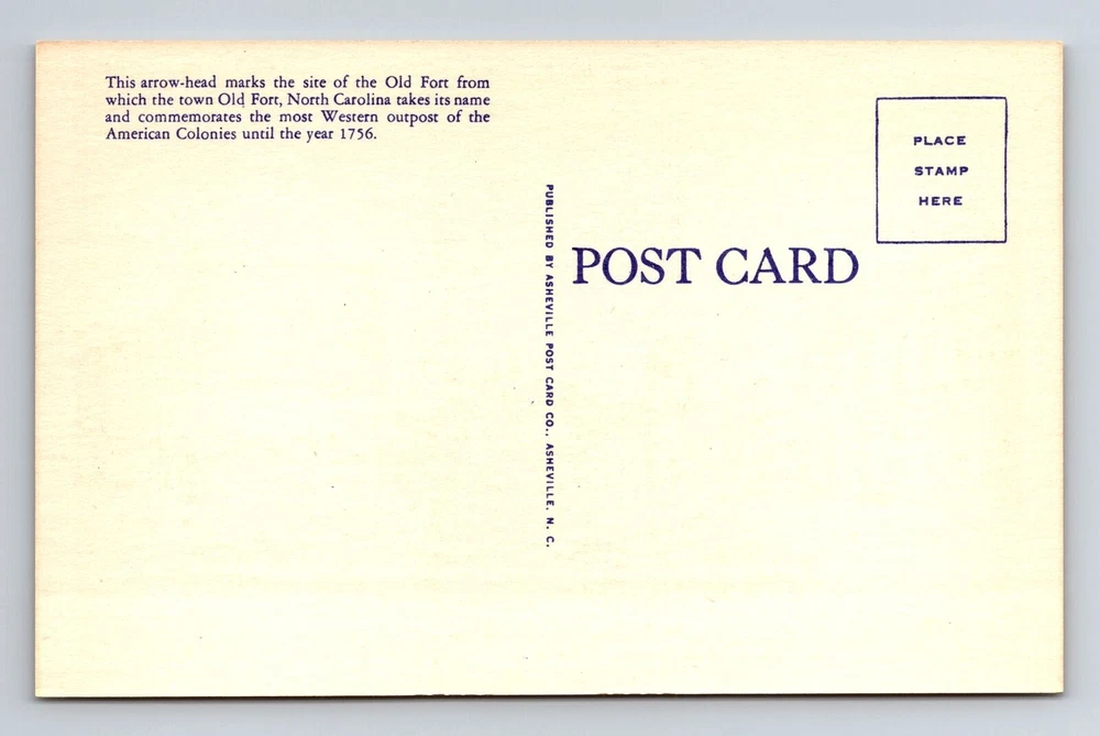 Country: USA Size: Standard (5.5 x 3.5 in) Postage Condition: Unposted Country/Region of Manufacture: Unknown Era: Vintage Unit of Sale: Single Unit Subject: Cities & Towns Original/Licensed Reprint: Original Type: Printed (Lithograph) Region: North Carolina Theme: Cities & Towns Material: Paper City: Old Fort