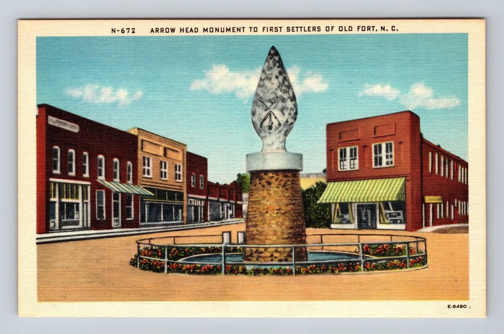 Old Fort NC-North Carolina, Arrow Head Mon to First Settlers Vintage Postcard