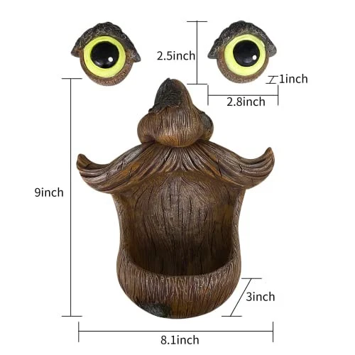 Return Policy Fast Delivery Trusted seller Tree Face Birdfeeder - Old Man with Glowing Eyes in Dark Outdoor Tree Hugger Sculpture - Whimsical Garden Decoration and Wild Birdfeeder Yard Art Product Description 【Funny Old Man Tree Art】Hang this bird feeder tree statues on the tree, our funny old man tree face on emerging from the bark or wood with watchful eyes. Turn any back yard tree into a woodsy, whimsical birdfeeder. 【Tree Face Bird Feeder】Just fill his mouth with seed and the birds will flock to it,putting a smile on everyone's face, Let your garden be full of life. 【Material】The tree face bird feeder use highly detailed sculpted resin and painted to resemble bark, robust and reliable. 【Perfect Backyard Birding Décor】 Dress up with this old man tree sculpture to attract wild bird to perch and feeding. You can enjoy to watch these little cute elves with your family and friends. 【Easy To Install】Come with screws to install on the tree. Installation can be completed in a few minutes. Size: Eyes are 2.5" x 2.8", mouth and nose piece: 9" x 8.1". Shipping Returns Payment Shipping Shipping is FREE to all addresses other than APO/PO boxes in the lower 48 states. All our stock ships from US-based warehouses. Shipped via USPS or UPS (depending on location and package weight) Unless stated otherwise, all orders will ship within 24-72 hours of your payment being processed. Check our feedback to see the great reviews of FAST shipping we offer. Returns Seller does not accept returns Payment We currently accept payment via eBay managed payments only. Once payment is cleared, we will dispatch your shipment within 1-3 business days. Please refer to the "Shipping" tab for more information regarding shipping speed to your destination.