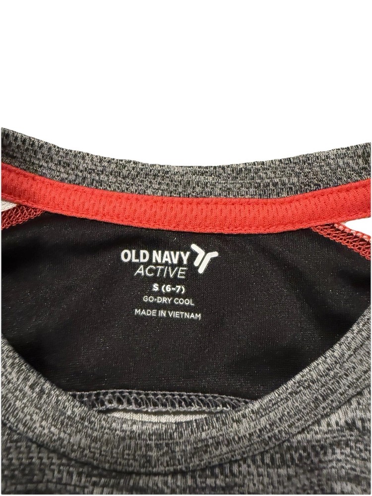 The Old Navy Active Go Dry Shirt in size Small (6-7) for boys is a versatile and functional activewear piece perfect for various occasions. Made from a blended fabric with moisture-wicking and quick-dry properties, this black, grey, and red shirt is easy to care for and lightweight, making it ideal for active boys who love outdoor sports and activities like basketball, running, or even just playing at the park. The pullover style with a crew neck and short sleeves ensures a comfortable fit, while the tagless design adds to the overall breathability and comfort of the shirt. Perfect for summer, fall, and spring seasons, this Old Navy Active shirt is a great addition to any young athlete's wardrobe.