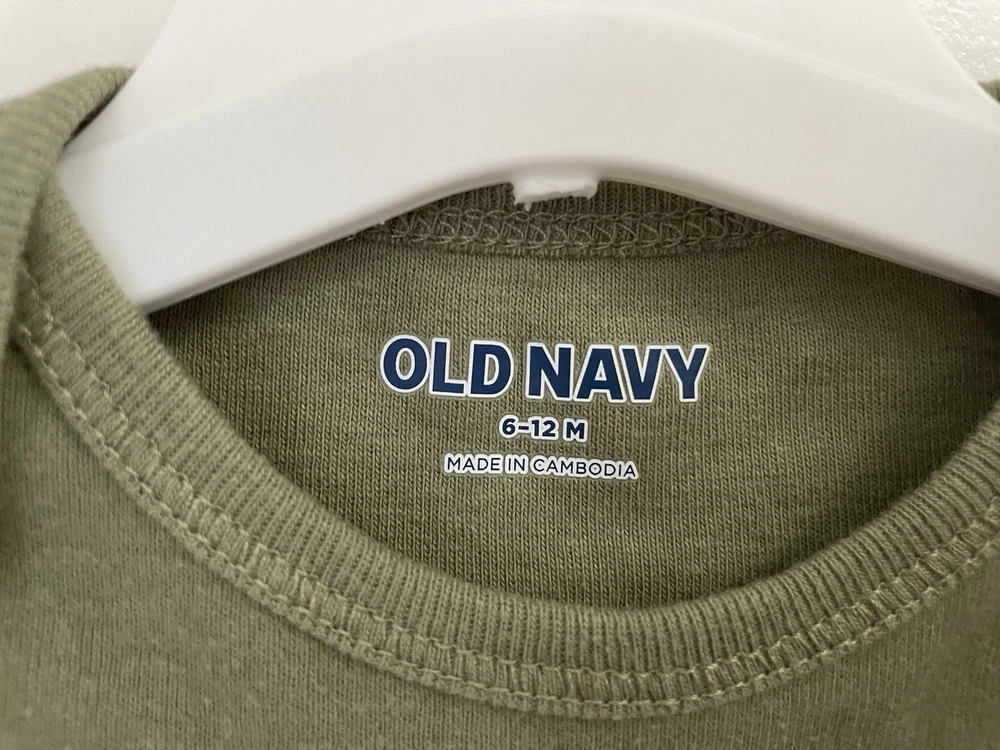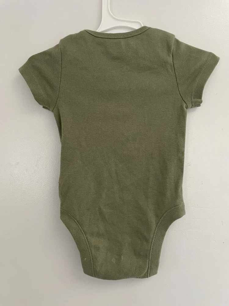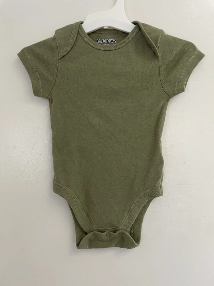 Old Navy Baby Boys Solid Green Rib-Knit Short Sleeve Bodysuit Olive Green 6-12 M. Condition is pre-owned. Smoke free, pet free home. Shipped via USPS Ground Advantage. In very good condition. There is a small hole in the back by the neck. Free of any rips or stains.