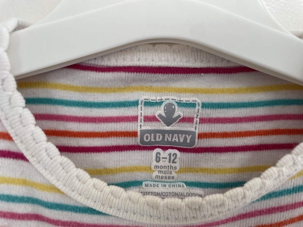 Old Navy Baby Girls Rainbow Striped 100% Cotton Long Sleeve Bodysuit Cream 6-12M. Condition is pre-owned. Smoke free, pet free home. Shipped via USPS Ground Advantage. In good condition. There is a light stain on the front. Free of rips.