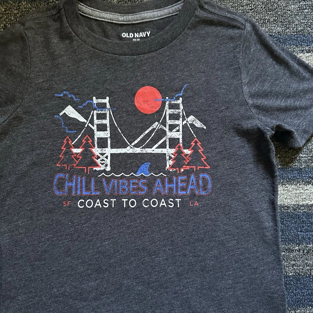 Old Navy Boys 6 Piece Short Sleeve Graphic Tees Clothing Lot * Size XS 5 * Gently used- white tee has small stain- see pic * Great for play or school Smoke & Pet Free Home