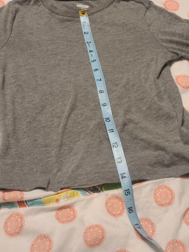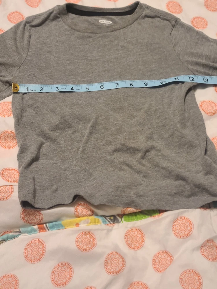 Upgrade your little one's wardrobe with this stylish Old Navy boys' t-shirt. Made from a comfortable blend of polyester and cotton, this pullover features a round neckline and long sleeves. The solid gray color and band collar style add a touch of sophistication to any outfit, making it perfect for activewear, school, or walking. This lightweight and easy-care t-shirt is machine washable and features a dark fabric wash. It's a perfect choice for the winter, fall, or spring seasons. Whether you're looking for a casual outfit for your little boy or something more stylish, this Old Navy t-shirt is a great addition to any wardrobe. See photos for measurements approximate. 60% cotton and 40% polyester. Very good pre-owned condition.