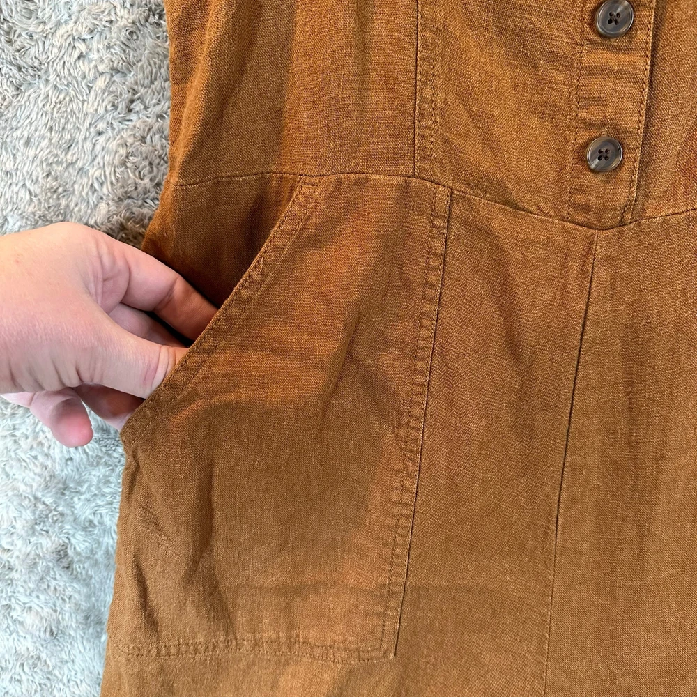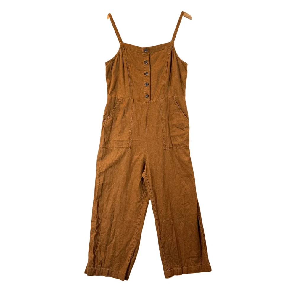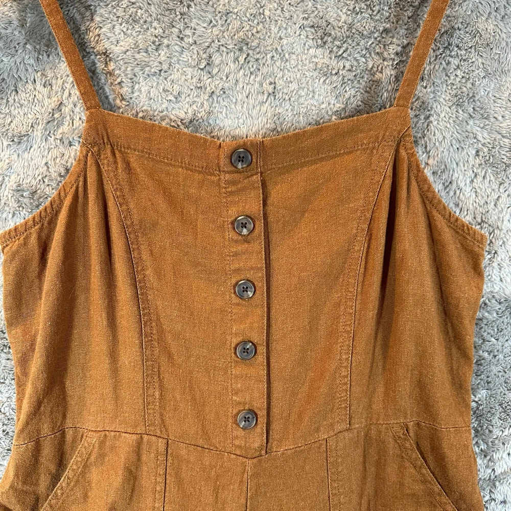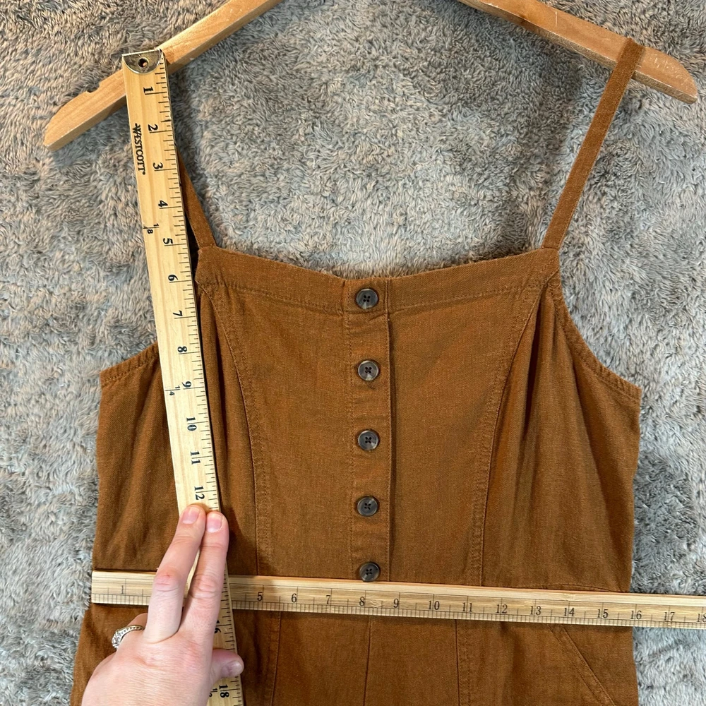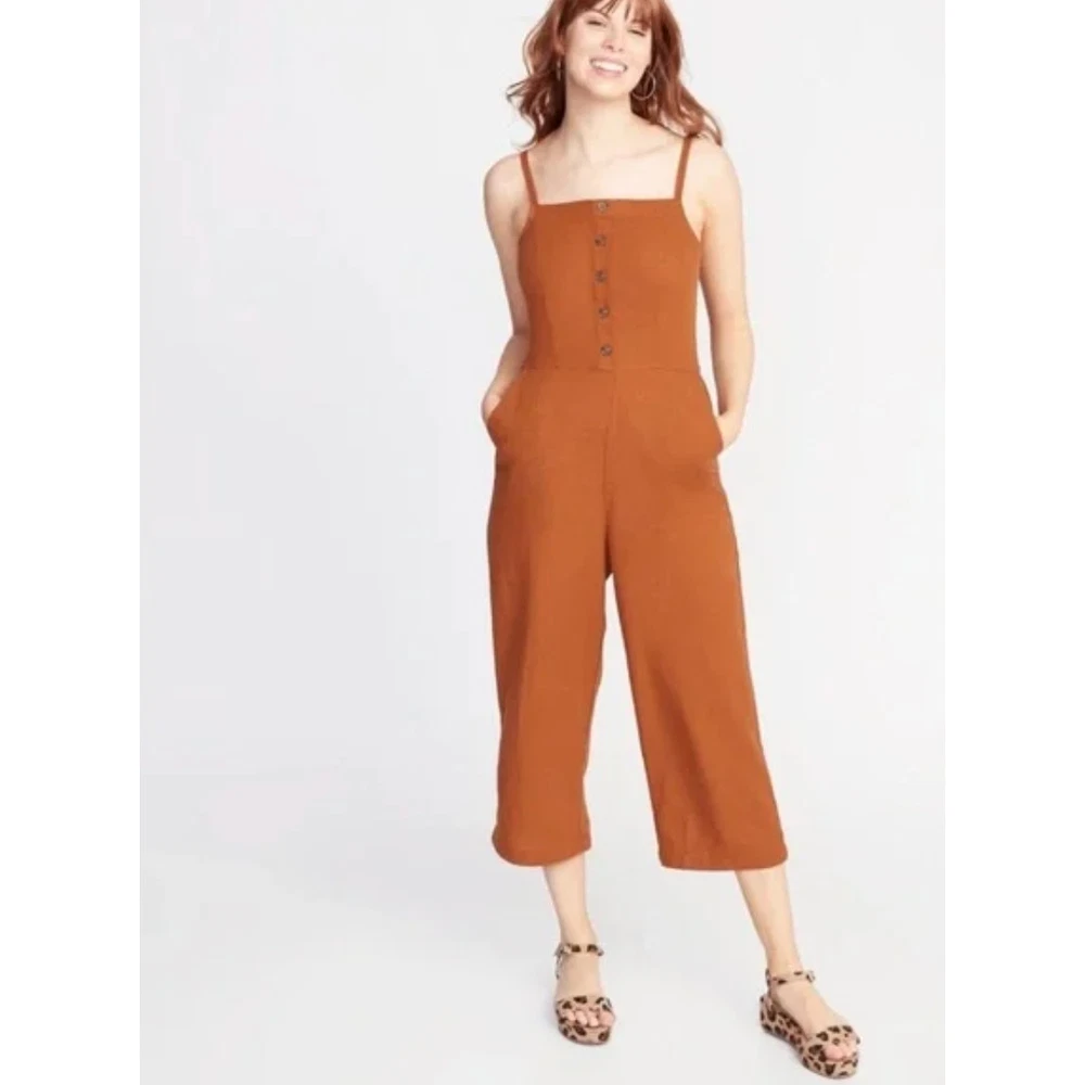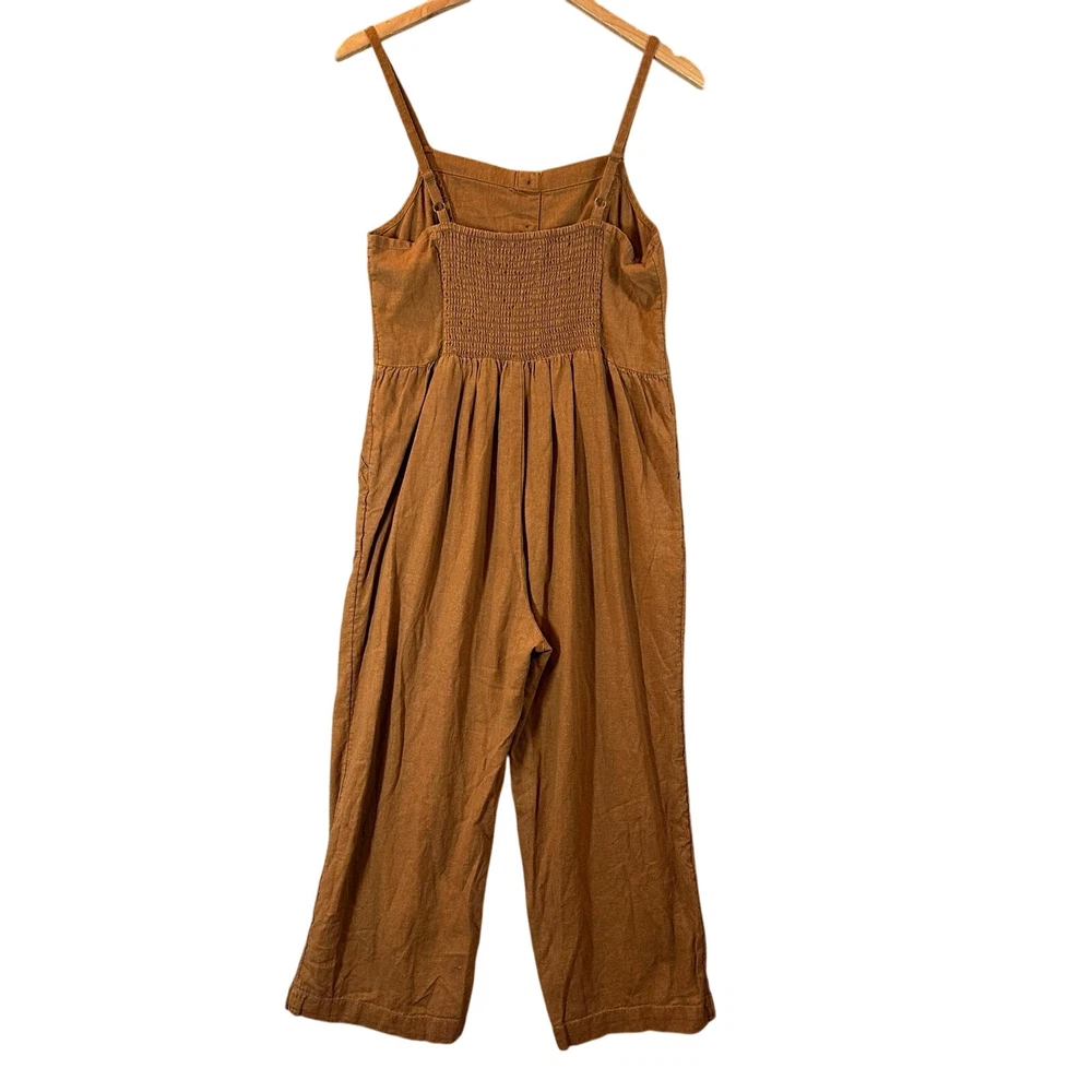 Old Navy Button Front Linen Blend Cami SleevelessJumpsuit Spice of Life Brown Smocked Back M Medium Great condition, gently worn, no flaws. Size Medium, approx measurements in photos and below: pit to pit: ~16.5" across laid flat, waist: ~16" across laid flat; Rise: ~13"; Inseam: ~22.25; Leg opening: ~10" across laid flat" Sleeveless Button Spice of Life 551897-02 306006