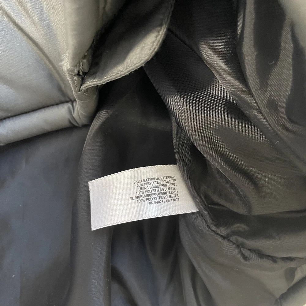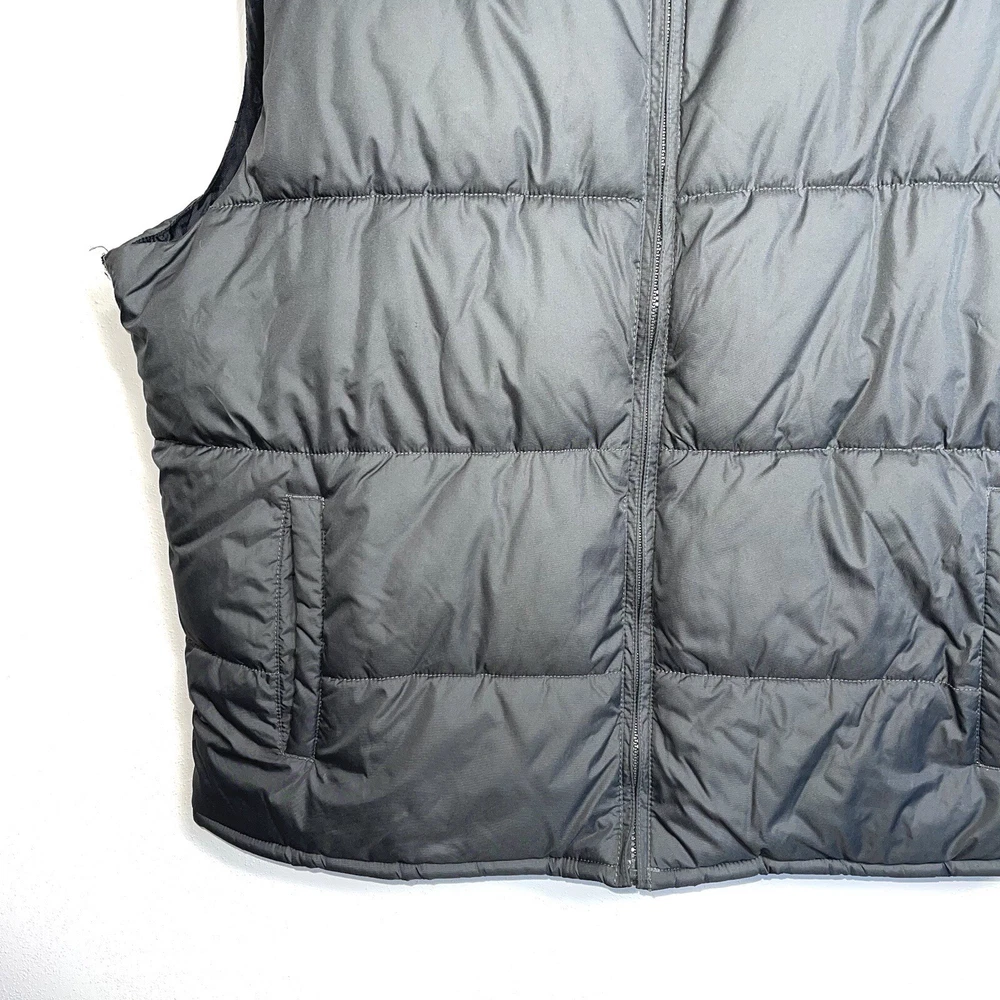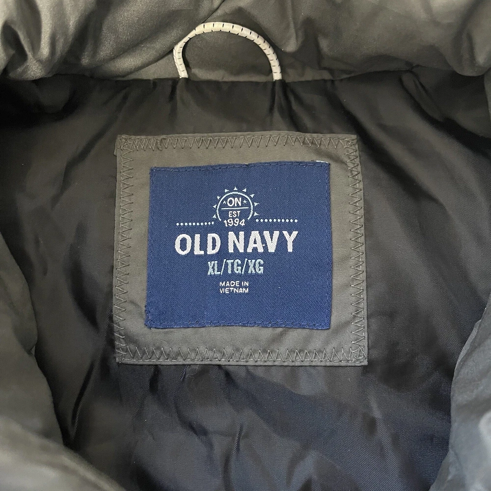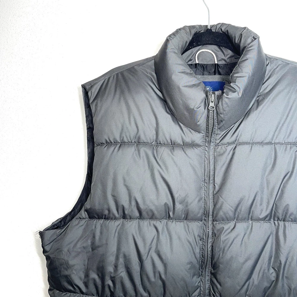 Old Navy Frost Free Stainless gray puffer vest. In excellent condition! Collared. Sleeveless. Full zip front closure. Front hand pockets. Puffer down material. Dark gray color. Size xlarge. 100% polyester Measurements provided in photos