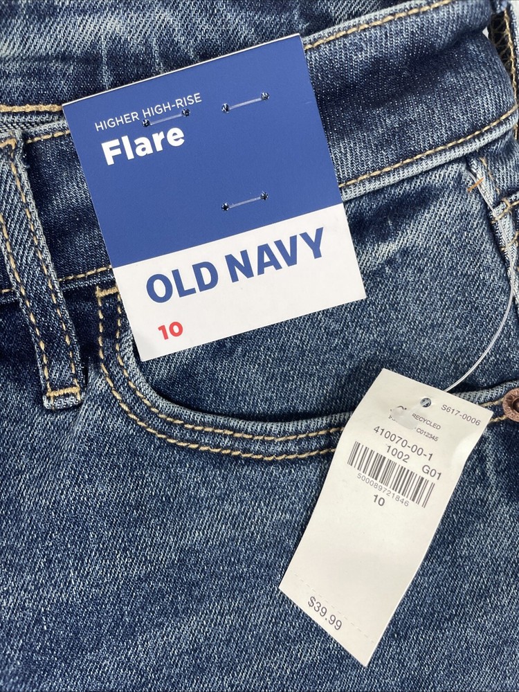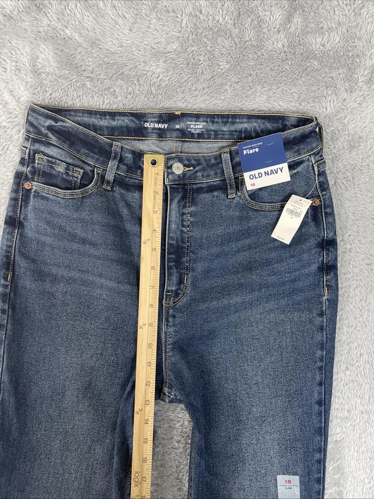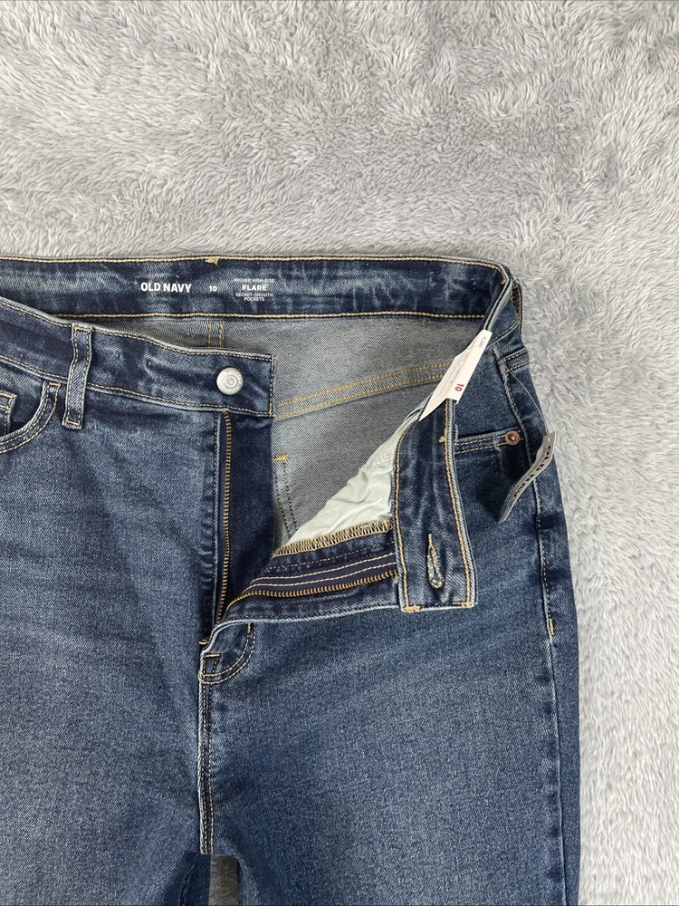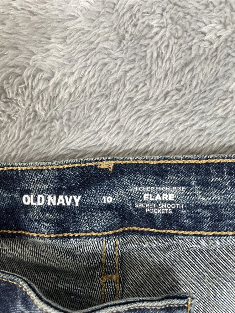 Old Navy Jeans Womens 10 Blue Flare Higher High Rise Stretch Denim ~30.5" Inseam CHECK THE MEASUREMENTS. Title only states tag size. Sizes can vary. Condition is used. Good used condition with typical wear. No losses to note. See photos for condition and detail. Please look carefully at all photos. The photos are an important part of the description. If you have questions, please ask. Returns are accepted within 30 days of purchase. The item must be returned in exactly the same condition as received. Items will be inspected, serial numbers checked, etc. Shipping fees are not refundable.