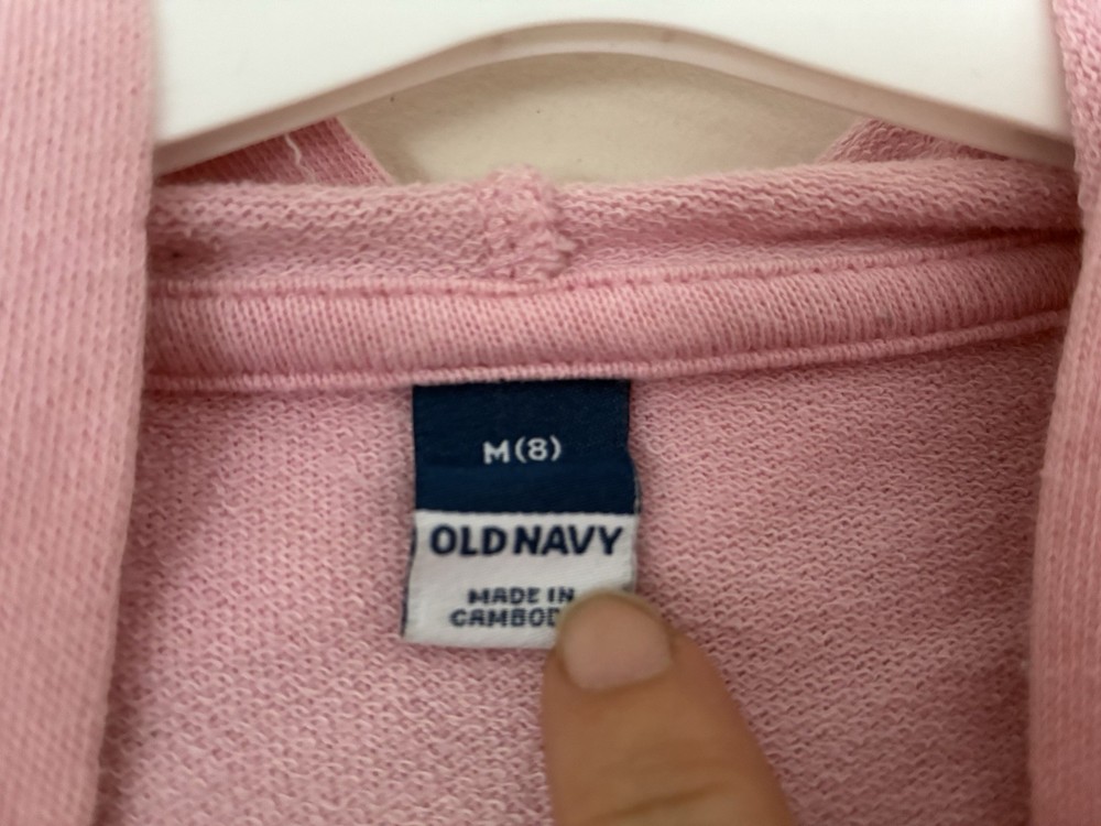 Color: Pink Occasion: Casual Type: Casual Country of Origin: Cambodia Closure: Pullover Sleeve Length: Long Sleeve Style: Cropped Pattern: Ombre Fade Features: Easy Care, Hooded, Lightweight, Stretch Garment Care: Machine Washable Seller Notes: “In good condition. There are light stains on the front. Free of rips.” Department: Girls Material: 93% cotton, 7% polyester Fit: Regular Brand: Old Navy Season: Fall, Spring, Winter Size: 8