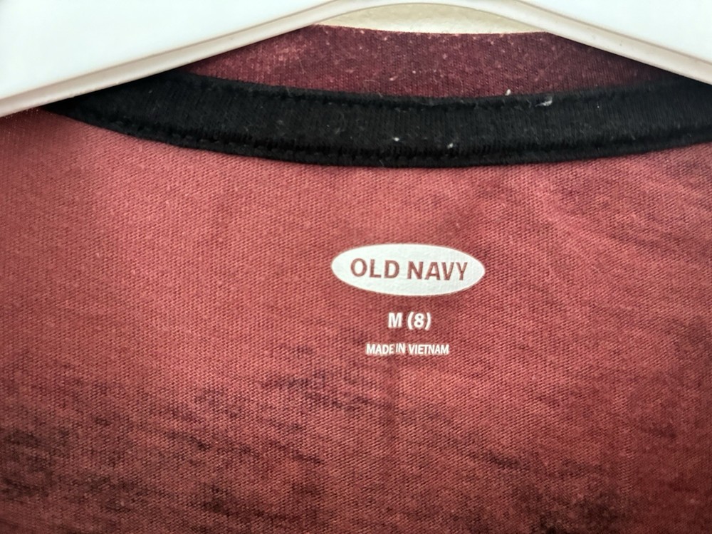 Old Navy Kids Boys Tie Dye Cotton Blend Crewneck Long Sleeve Shirt Maroon M 8. Condition is pre-owned. Smoke free, pet free home. Shipped via USPS Ground Advantage. In fair condition. There is pilling of the fabric all over. Free of rips or stains.