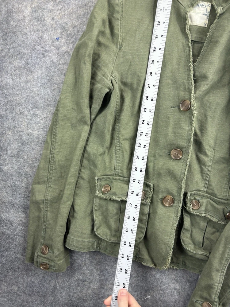 Old Navy Military Jacket Women S Linen Blend Olive Green Utility Outdoor Granola. Condition is Pre-owned. Shipped with USPS Ground Advantage.