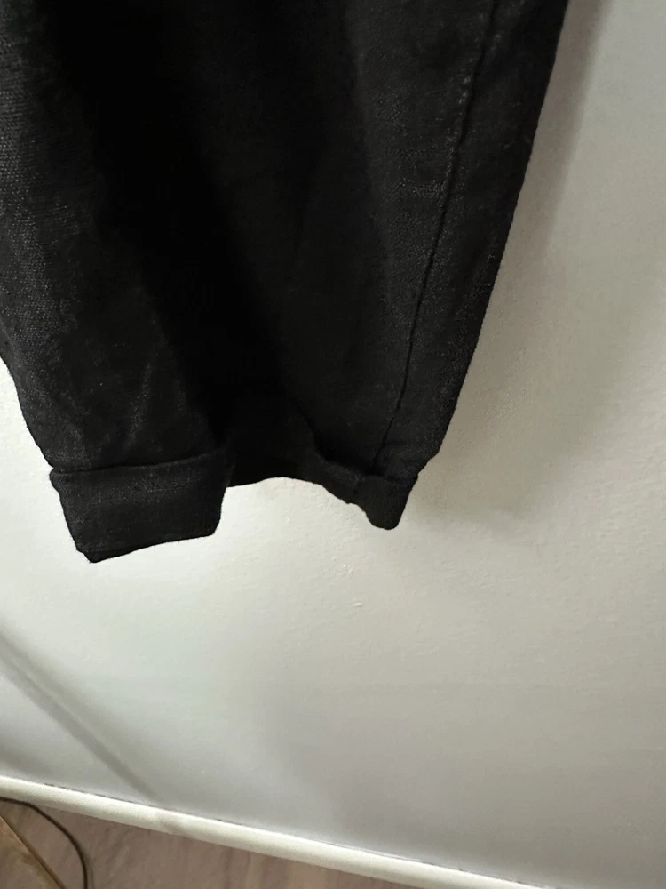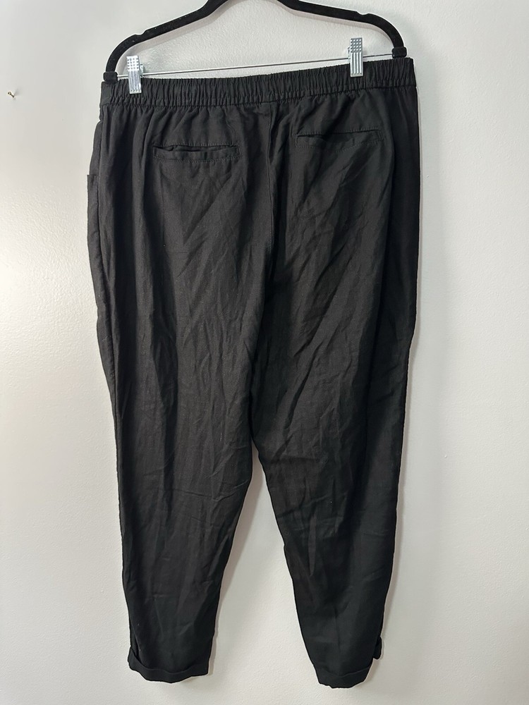 Crafted for versatility and comfort, these Old Navy pants are a staple for any wardrobe. The high-waisted design, combined with a tapered leg, creates a flattering silhouette that transitions effortlessly from daytime casual to evening cocktail attire. The breathable linen-rayon blend ensures all-day comfort, while the easy-care fabric allows for a hassle-free machine wash. Featuring a drawstring closure for a customizable fit, these pants also come equipped with convenient pockets. The black color offers a timeless appeal, making them a perfect match for a range of tops and shoes. Whether you're out for a casual stroll or headed to a party, these cropped pants are an ideal choice for any occasion.
