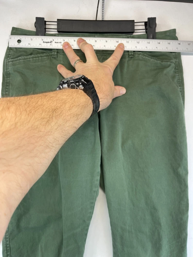 Update your wardrobe with these stylish Old Navy Pixie Khakis. These pants are perfect for any occasion, whether it's for work or play. The pants are made of a comfortable blend of spandex and cotton twill fabric, which makes them durable and machine washable. The pants feature a flat front design with a straight leg style and a mid-rise waist size. They also have pockets for added convenience. These pants are perfect for any season, whether it's winter, summer, fall, or spring. The green color adds a pop of color to any outfit, and they are perfect for school, city, or preppy themes. Very good preowned condition with normal preowned wear and no issues. Please see all photos. For clothing specifically, see photos for all measurements and/or any issues if applicable. Pay close attention to the measurements as the size of the garment may quite possibly be different than the actual measurement(s) due to washing, shrinkage, or stretching as these are used clothes. The size in the title is the size on the tag of the garment. See photos for measurements of actual measurements as they may differ. ALWAYS CHECK THE MEASUREMENTS IN THE PHOTOS. This will remove any questions on measurements as well as always cover the possibility of human error in the listing(s) in the case of a typo or oversight. All clothing and shoes have been washed/cleaned, and comes from a smoke free environment. If shoe trees appear in the photos, they are for photography purposes only to illustrate how the shoes look filled out, and are not included. I am available for questions. I accept or negotiate reasonable offers. Have an amazing day. Thank you.