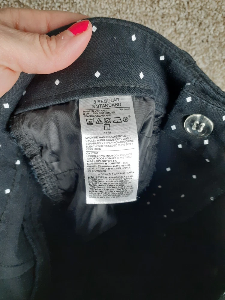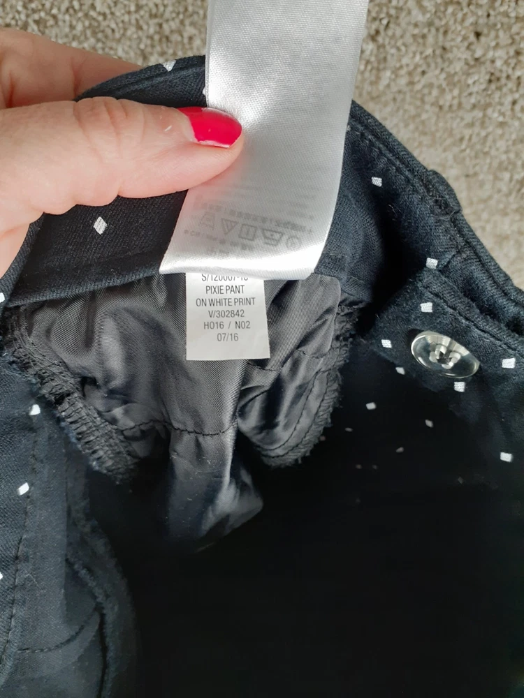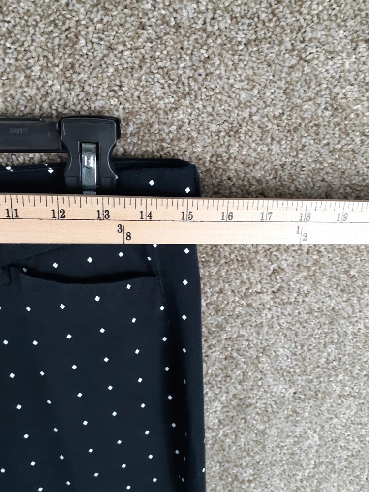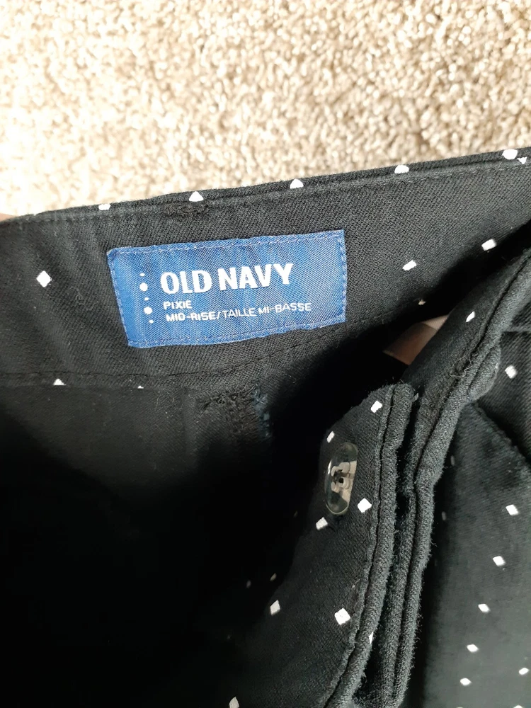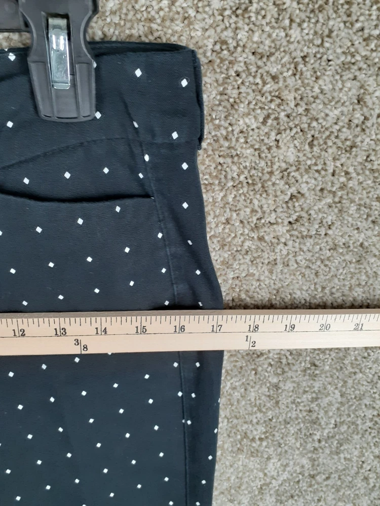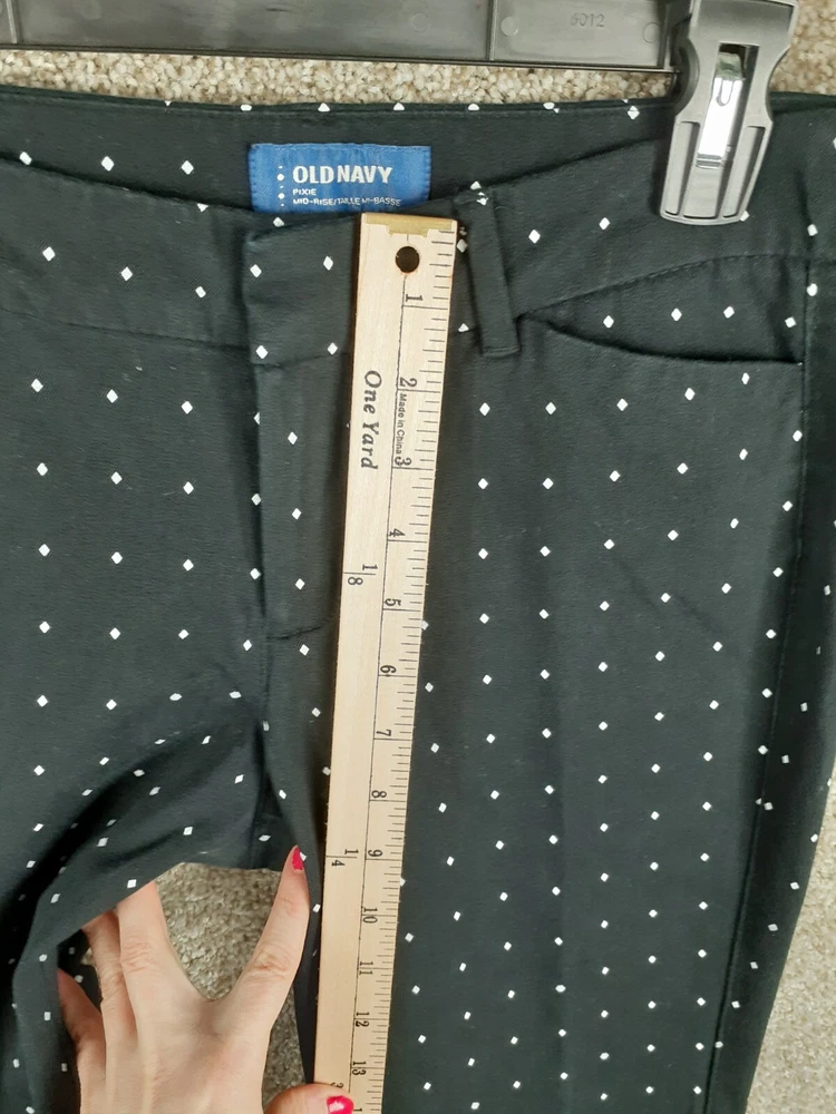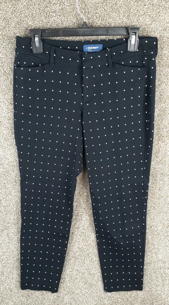 For Sale: A pair of Old Navy Pixie Pant Womens 8 Black White Polka Dot Mid Rise Crop Stretch Casual Size: Women's 8 Measurements: Refer to photos above. In good gently used condition with no major flaws such as rips, tears, or stains. We ship items daily, so plan to receive your item(s) quickly! We also combine & discount shipping for orders with multiple items. From a smoke-free home. We accept domestic 30-day returns. We provide a variety of measurements on all items. Measurements are approximate and as close to accurate as possible but certain fabrics and styles can have a slight variation. Please be sure to check all measurements on used garments as they have been laundered and might vary from other items in the same style. Please message me with any question you may have, I answer most questions very quickly!