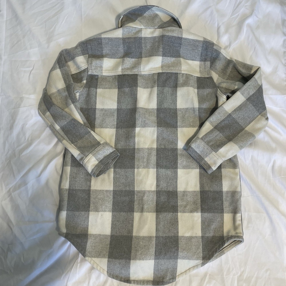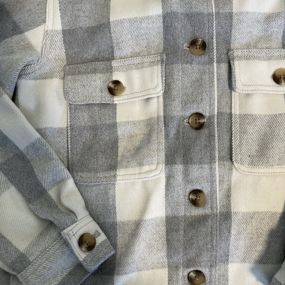 Old Navy Shacket ~ Cream & Gray Plaid ~ Women’s Small Heavy Flannel Shirt Jacket