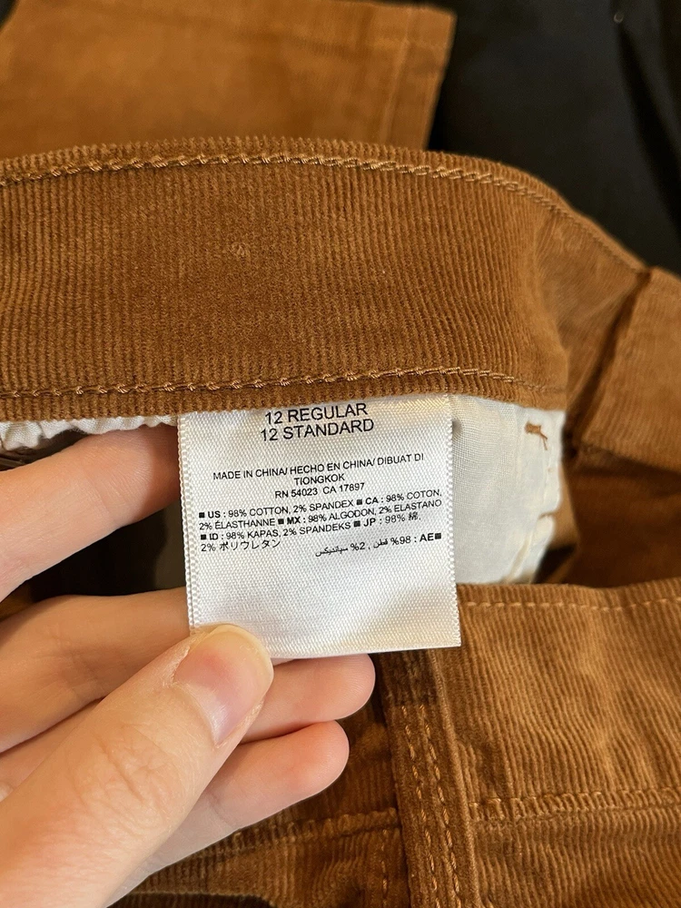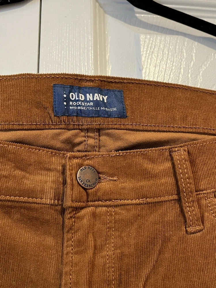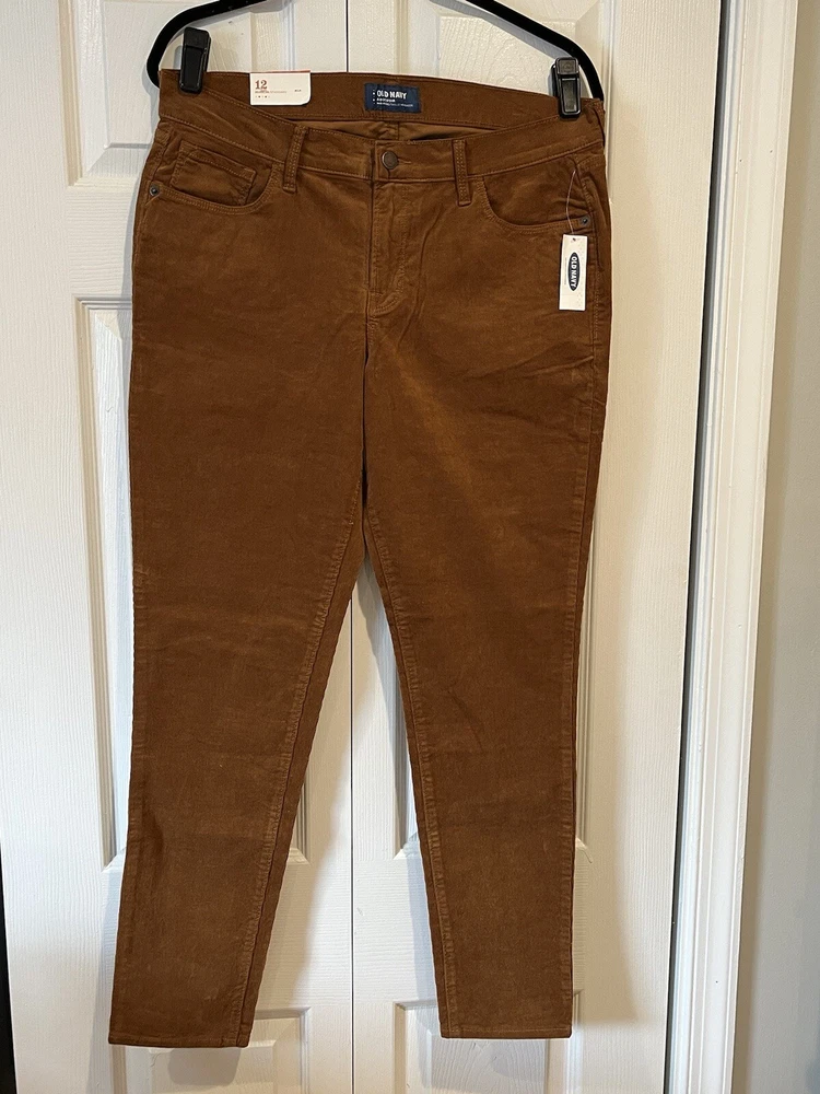Country/Region of Manufacture: China Leg Style: Skinny Pattern: Solid Waist Size: 33 in Front Type: Flat Front Department: Women Closure: Button, Pull On, Zip Theme: 80s, Bohemian, City, Grunge, Authumn Color: Brown Size: 12 Size Type: Regular Season: Fall, Spring, Winter Fabric Type: Corduroy Accents: Button, Zipper Vintage: No Fit: Regular Inseam: 27 in Rise: Mid (8.5-10.5 in) Style: Corduroy Occasion: Casual, Party/Cocktail, Workwear Garment Care: Machine Washable Features: Breathable, Comfort, Easy Care, Pockets, Stretch Material: Cotton Blend Personalize: No Type: Pants Handmade: No Brand: Old Navy