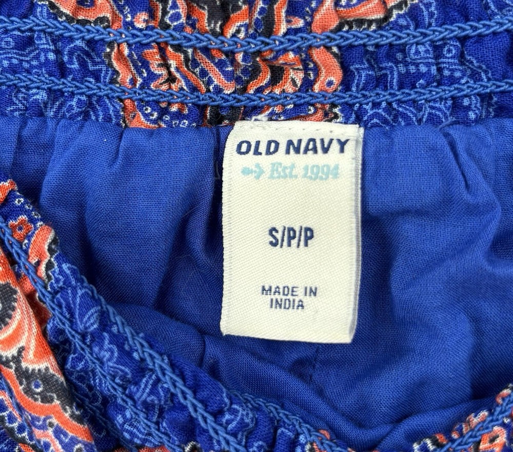 This Old Navy Women's S Marakesh Design Elastic Waist Lined Blue & Orange Short Skirt is perfect for any occasion. The skirt is made of lightweight cotton material and features a pleated and ruffle accents. The elastic waistband ensures a comfortable and secure fit, while the pull-on closure makes it easy to wear. The skirt is machine washable and perfect for summer, fall, and spring seasons. The multicolor design with blue and orange hues adds a touch of bohemian, tropical, and retro style, making it perfect for festivals, beach parties, and casual outings. The skirt is lined and has a flare style, giving it a preppy and snake-themed look. Items are PREOWNED, NWT or NWOT (NEW WITH or WITHOUT TAGS). Items are checked for flaws and if applicable are pictured. Items are well cared for and stored indoors. Please review and compare the measurements we provide in the photos. Measurements are approximate and in flat inches. Please keep in mind many items are preowned and may not reflect the manufacturer's tag/sizing and may have shrunken. We ship quickly. 30 day returns available. Please contact with any questions. Thank you for your business and remember to save our store info as we add new items often. God Bless Mdubs Clothing
