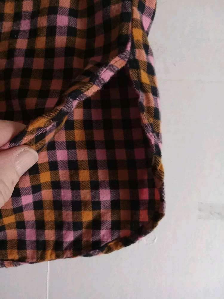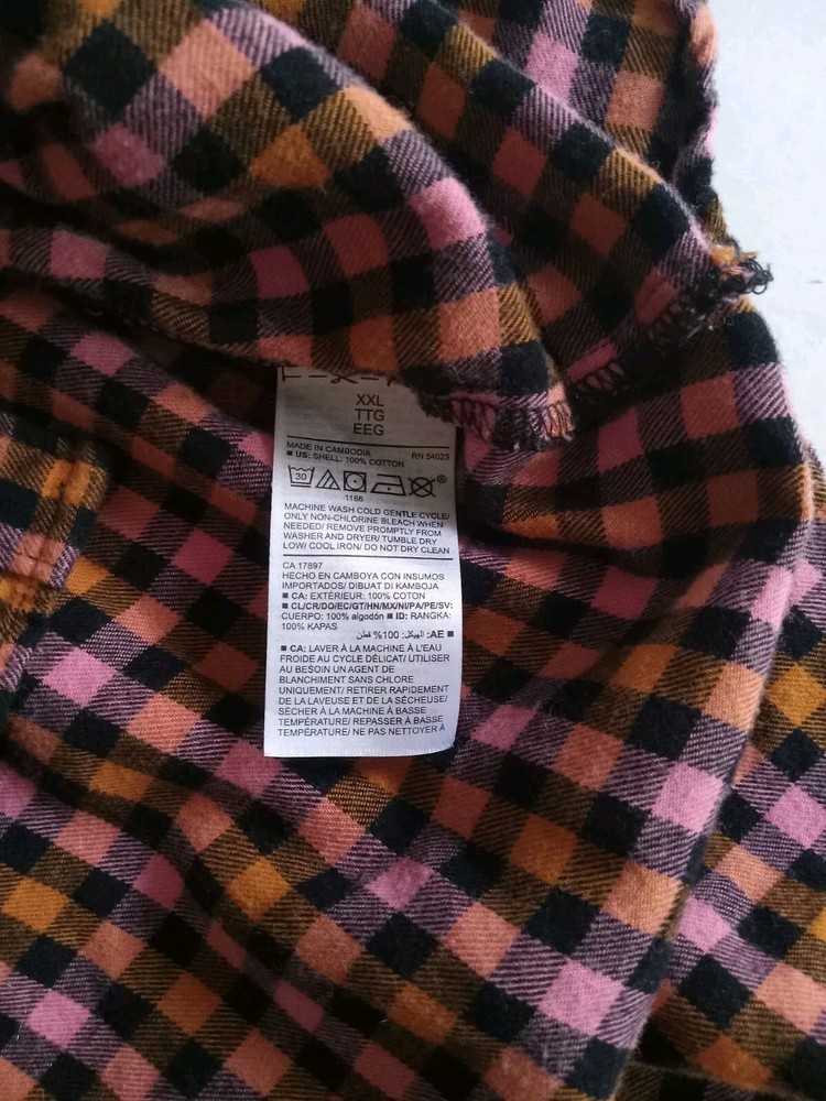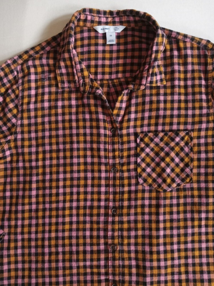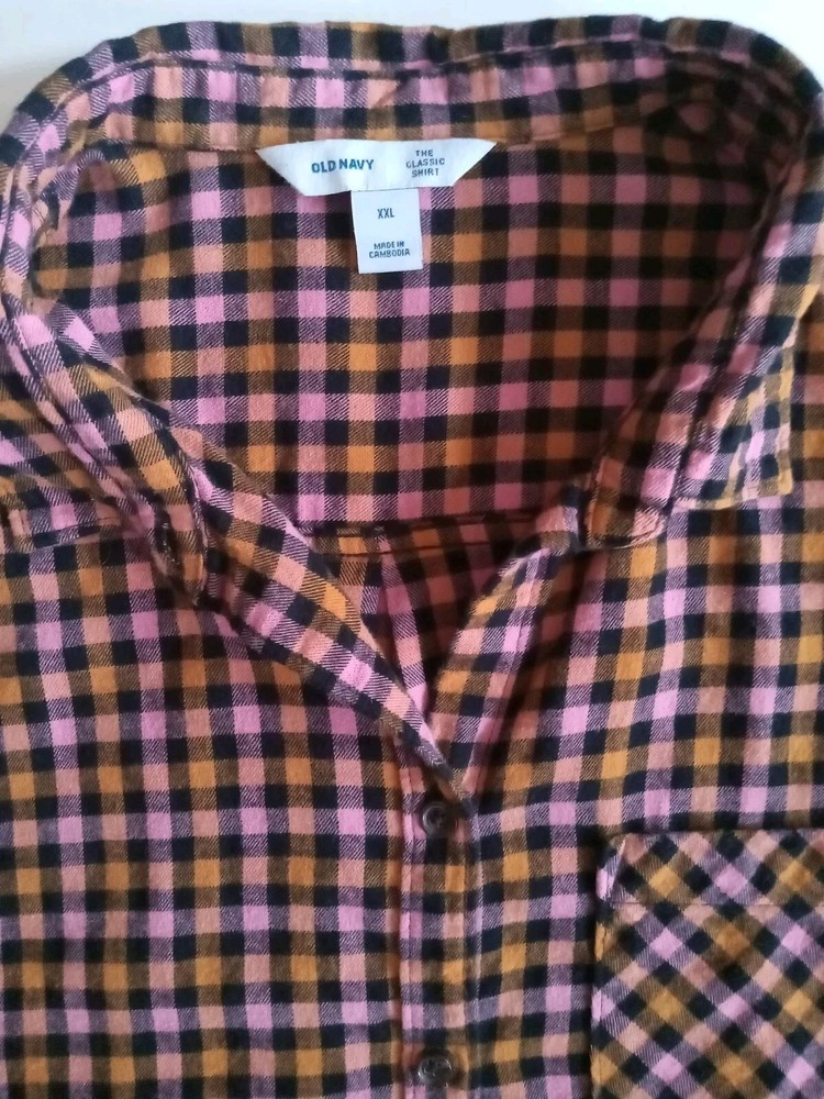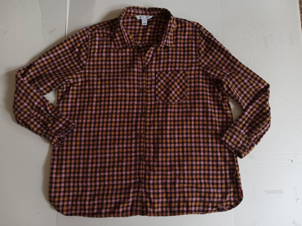 Old Navy XXL Womens Flannel Shirt Orange Pink Black Plaid Cotton Button-Up