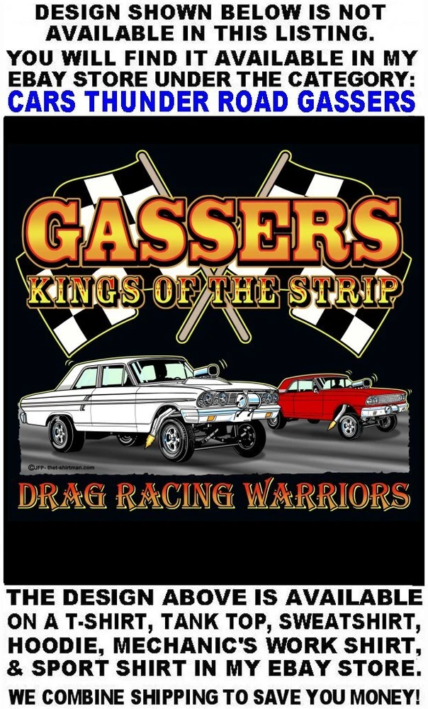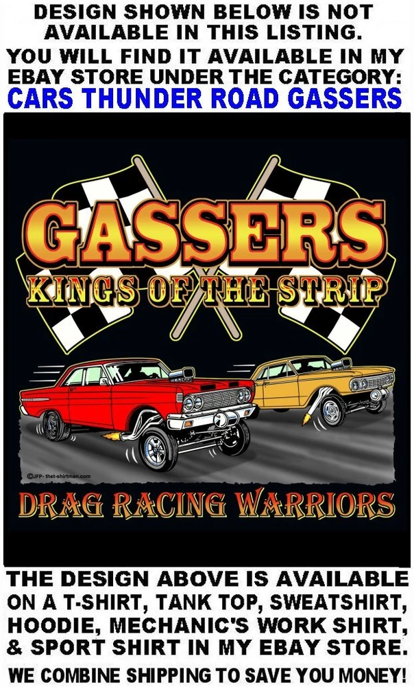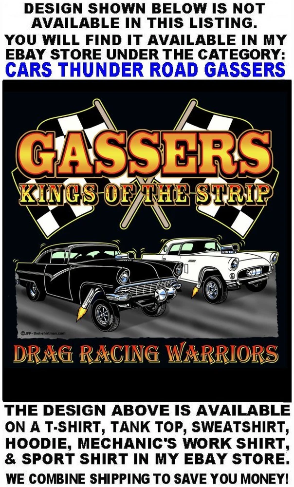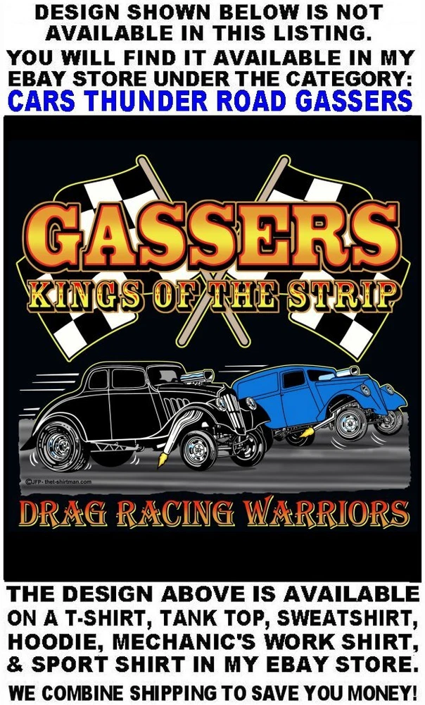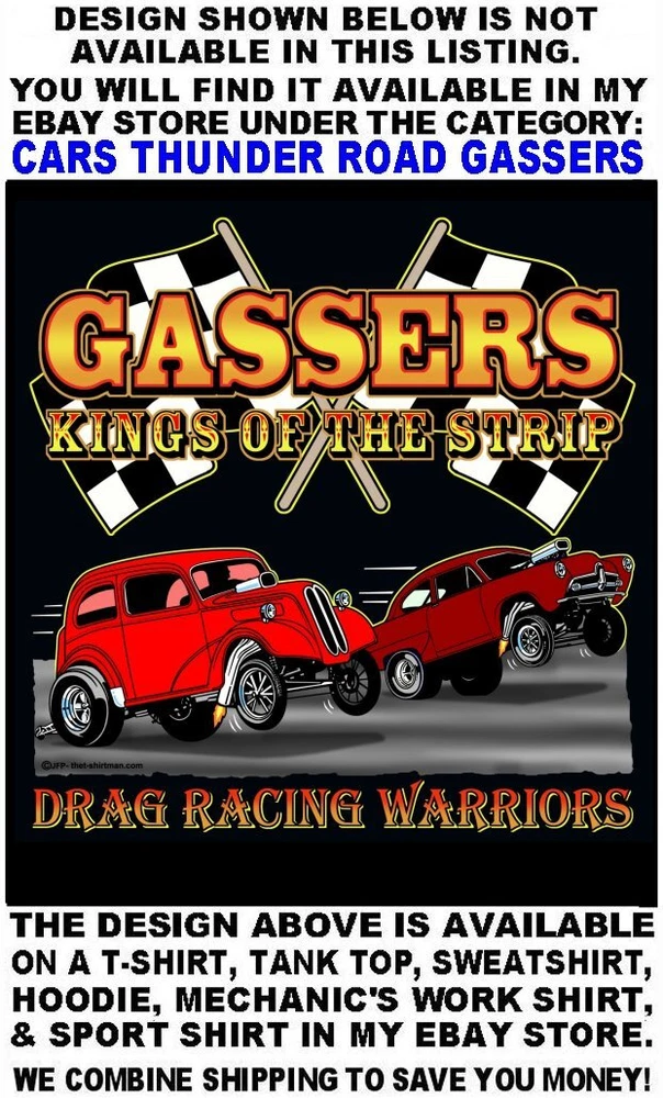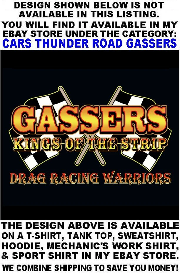 We only use name brand, high quality, soft hand 65% / 35% poly cotton blend poplin permanent press shirts. Great for casual dress, or as mechanic's work shirts. Or better yet, you'll be the hit at any car show, swap meet, or racetrack with one of our specialty custom shirts! These designs are our own copyrighted designs and not available anywhere else. Please use the size chart that is shown in the Ebay pictures for this listing. Colors include Charcoal, Black, Navy, and Maroon in most sizes from Small to 6XL Our shirts are not pre-printed then simply pulled off a shelf. Each shirt is custom printed per your order, by us, right here in the USA. We print and ship within 1 working day. The design for this listing offers 30 different variations. It is a unique shirt you the customer design yourself by choosing this style, the size, and the color. Double check to be sure and order the exact size, color, and print combination you want. IMPORTANT: use the size chart. Buying more than one shirt? I will combine the shipping to save you money. Be sure to click the "Save this seller" button. For more cool short & long sleeve t-shirts, tank tops, sweatshirts, hoodies, zip hoodies, casual mechanics work shirts and more, click on: "Sellers other items". Then click the "category button" to choose the type of designs you like on the style shirt you want. If you have any questions, feel free to ask.