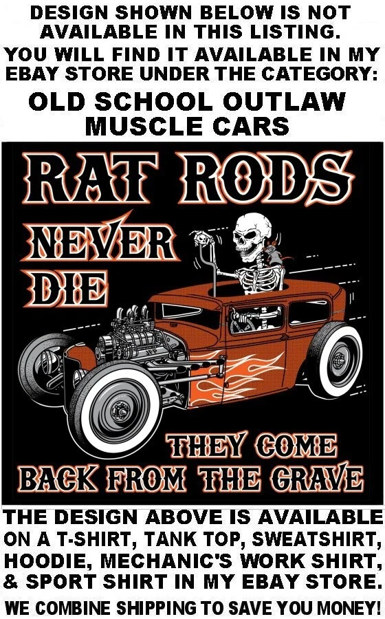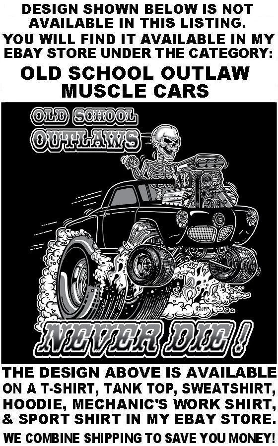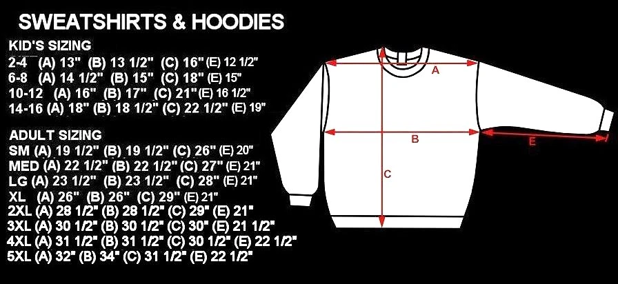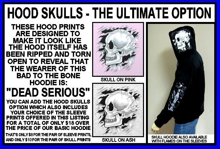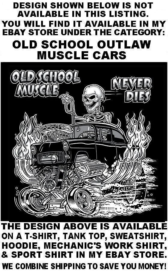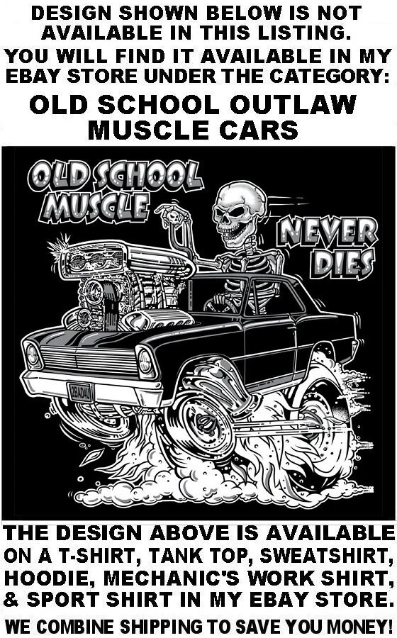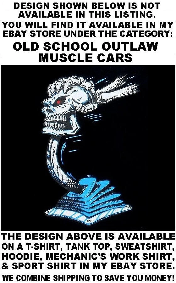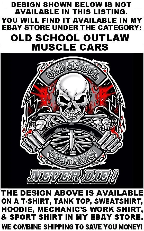 We use high quality Gildan 50/50 sweatshirt hoodies and print them ourselves right here in the USA. Please use the size chart that is shown in the Ebay pictures for this listing. It is quite accurate, and it will help you order the correct size for your purchase. No one offers you a bigger selection of options than we do! Each hoodie sweatshirt is custom printed per your order, it is not simply pulled off a shelf. This listing offers 240 different variations. It is a unique customized hoodie sweatshirt that you, as the customer, design yourself by starting with choosing the size and the color, and then on to other options including whether it is a single print with the full size design printed on the back only, or double print with the full size design on the back and the logo size design as shown in the listing printed on the front over the heart. Also, you may choose to add one of the two different pairs of sleeve print designs offered for your sweatshirt. For the final over the top option, you can have Skulls printed on the hood so when you're wearing the hood up it looks like the hood is ragged and torn letting you see the skull of the person wearing it! Buying more than one shirt? Don't worry, I will combine the shipping to save you money. Be sure to click the "Save this seller" button. For more cool short & long sleeve t-shirts, tank tops, sweatshirts, hoodies, zip hoodies, casual mechanics work shirts and more, click on: "Sellers other items". Then click the "category button" to choose the type of designs you like. If you have any questions, feel free to ask. Remember, our single print pullover hoodies and zip hoodie sweatshirts feature the full-size design printed on the back only. Our double print pullover hoodies and zip hoodie sweatshirts all feature the full-size design printed on the back, and the smaller logo size design shown, printed on the front over the heart. A double print DOES NOT mean the full size design is printed on the front and the back. (If for any reason Gildan becomes unavailable, we will maintain our high quality standard by using Hanes, Fruit of the Loom or an equivalent in sizing and fabric weight.)