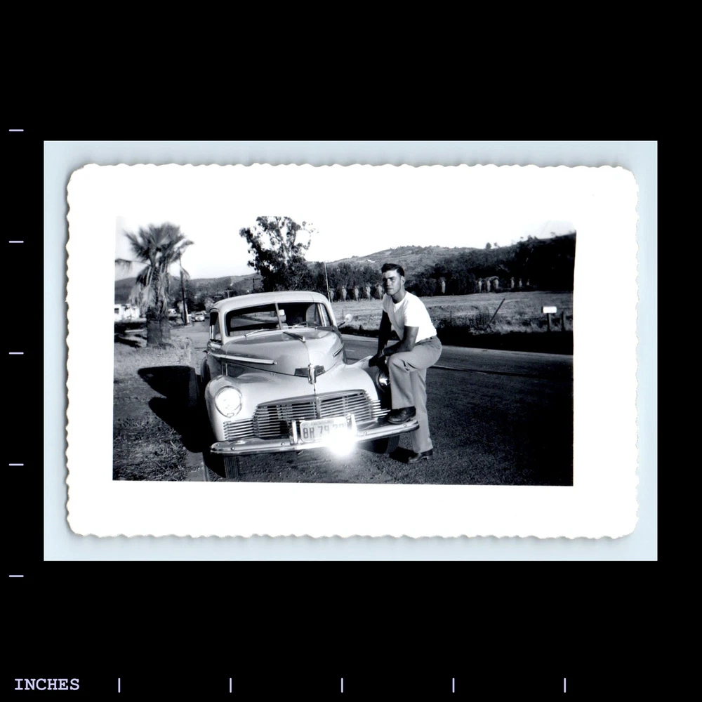 Old Vintage Photo MAN BY CLASSIC CAR CALIFORNIA LICENSE PLATE