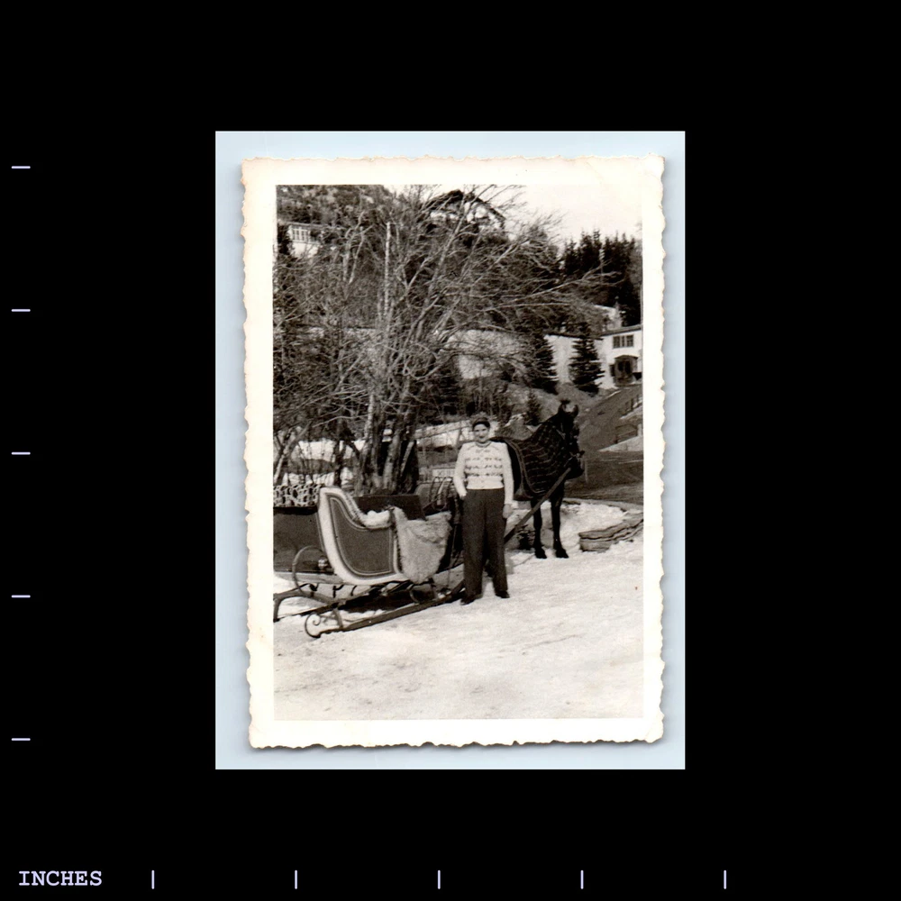 Old Vintage Photo WOMAN BY HORSE-DRAWN SLEIGH ST. MORITZ