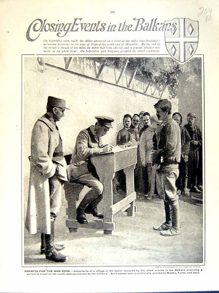 Old Vintage Print 1919 World War Villagers Balkans Permits Serbians Camp 20th
