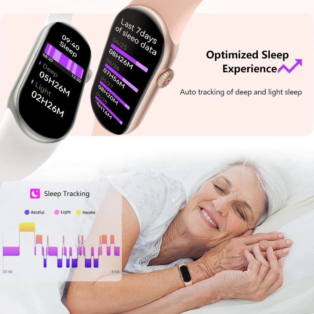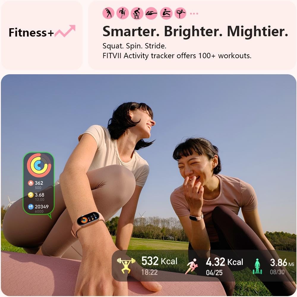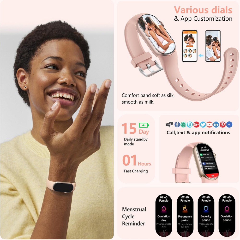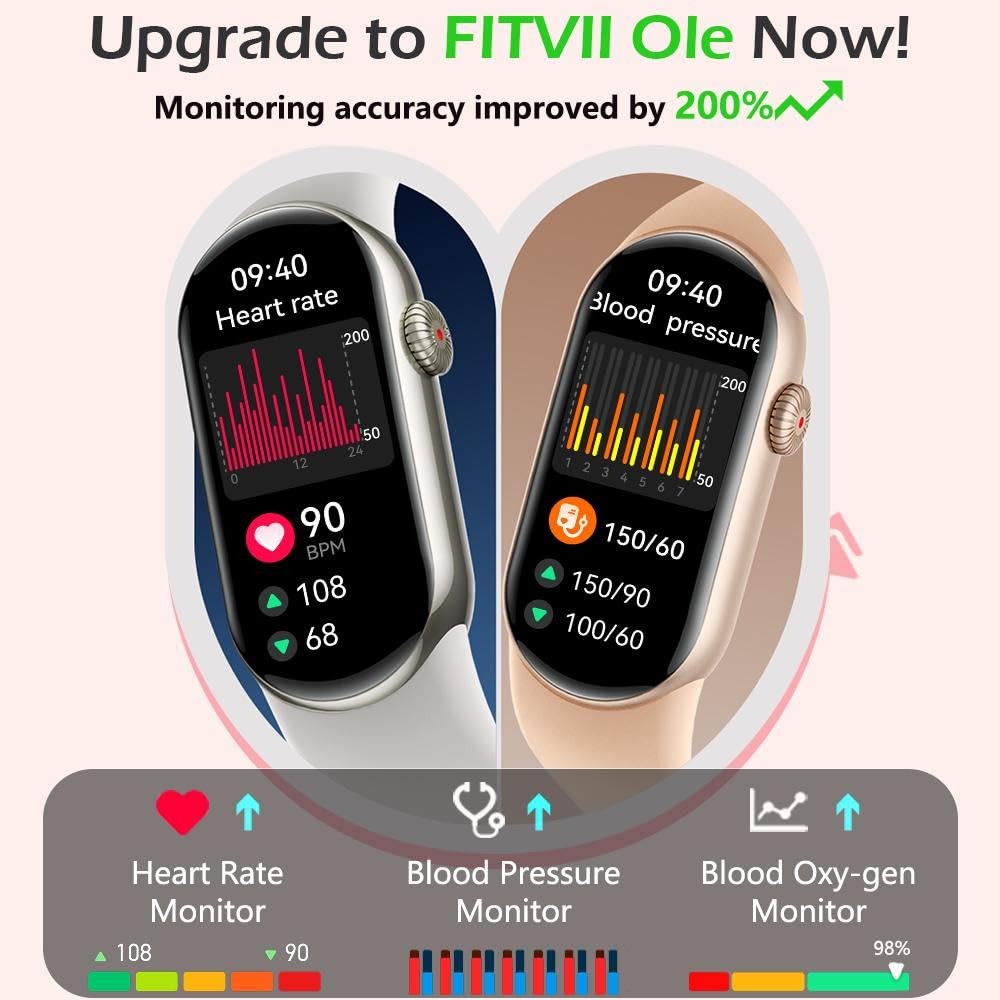 1.6" AMOLED HD Display: Step up your fitness game with the upgraded Ole fitness tracker, boasting a brilliant 1.6-inch AMOLED color HD screen. Enjoy sharp, vibrant visuals and a sleek metal body for a fashionable and lightweight look. Heart Rate & Blood Pressure Monitoring: Monitor your heart rate and blood pressure trends 24/7 with the tracker. Get valuable insights to aid your exercise planning and promote a healthy lifestyle. (Not intended for medical use) Blood Oxygen & Sleep Tracking: Ole fitness tracker can measure your blood oxygen saturation and help you understand your physical state. Great for high-intensity workouts and sports like marathons and gym workouts. Better sleep can power your days. Track your time in light and deep sleep to better understand your sleep quality each night. All-Day Activity Tracking: Automatically log your steps, distance, and calories burned throughout the day to keep track of your activity levels. With over 100+ sport modes, you can track virtually any type of exercise, from running and cycling to yoga and dancing. Manual Time and Date Setting: Enjoy the convenience of setting the time and date directly on your tracker, allowing for independent use without needing an app or smartphone. (Some functionality is limited in this case) Smart Features: Ole fitness watch offers a variety of intelligent functions. Customize your watch face, receive call and message notifications, find your phone, check the weather, get drinking and sedentary reminders, set alarms, control your music, and track your menstrual cycle. Compatibility: The Ole Fitness Tracker works with Android 5.0 & iOS 10 or newer smartphones with Bluetooth 4.0, but is not compatible with PCs, iPads, or Tablets. Enjoy up to 7-10 days of battery life on a single charge, depending on usage and other factors.
